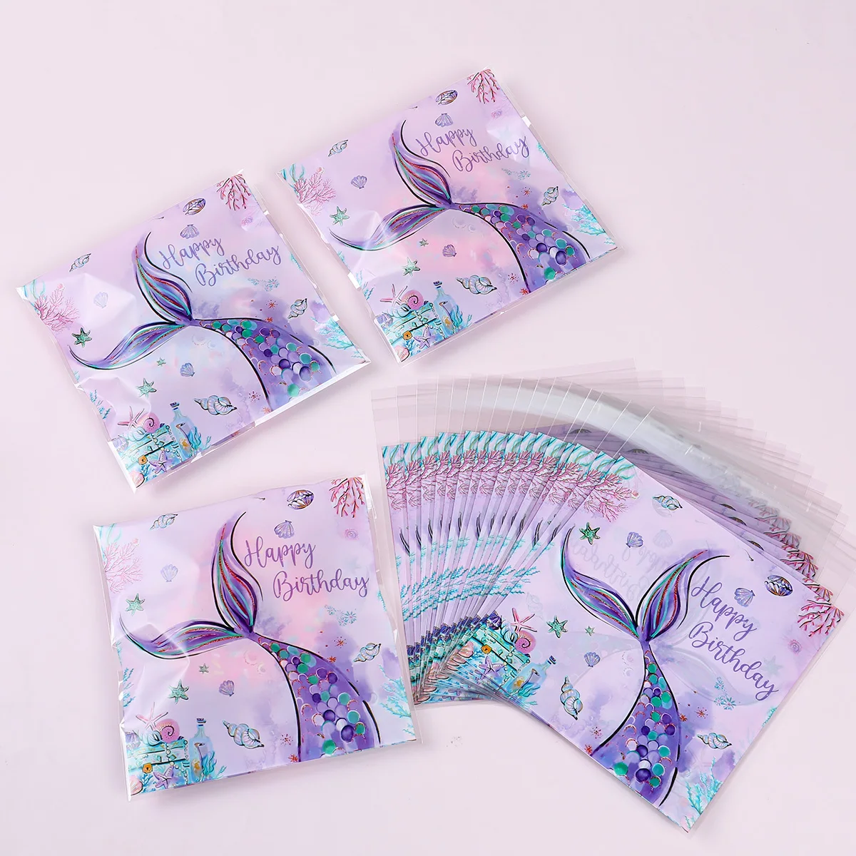 Bolsas de plástico OPP para Goodie de sirena, bolsas de cola de sirena para regalo de dulces, decoración de fiesta temática de mar de sirena, favores de fiesta de Baby Shower, 50 piezas