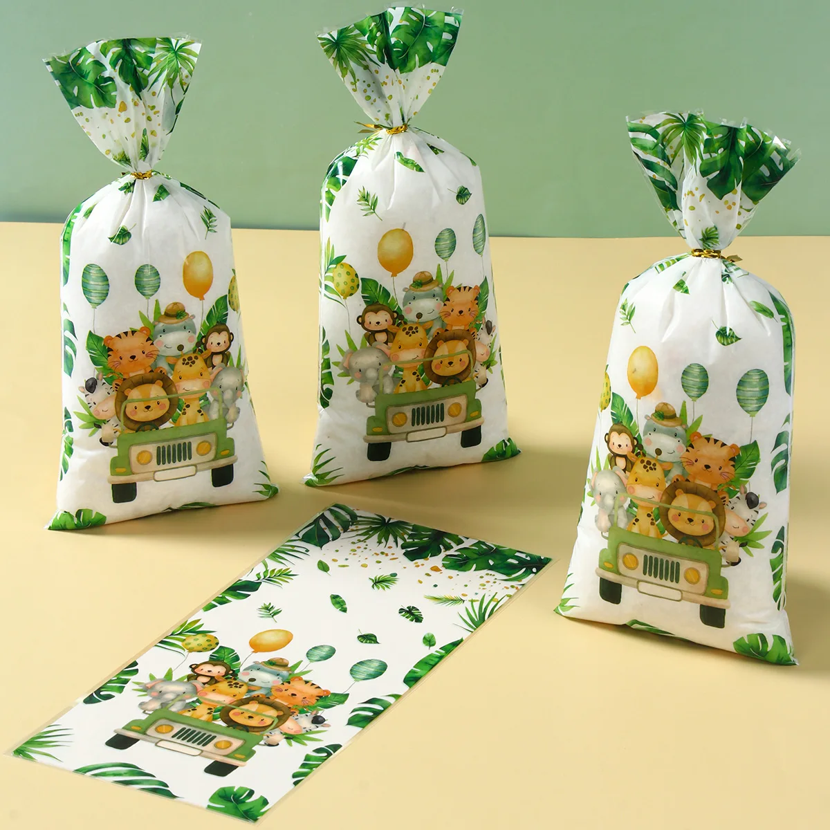 Comprar Bolsas de regalo de animales de la selva para niños, embalaje de galletas, dinosaurio, Safari, suministros de cumpleaños para invitados, Baby Shower