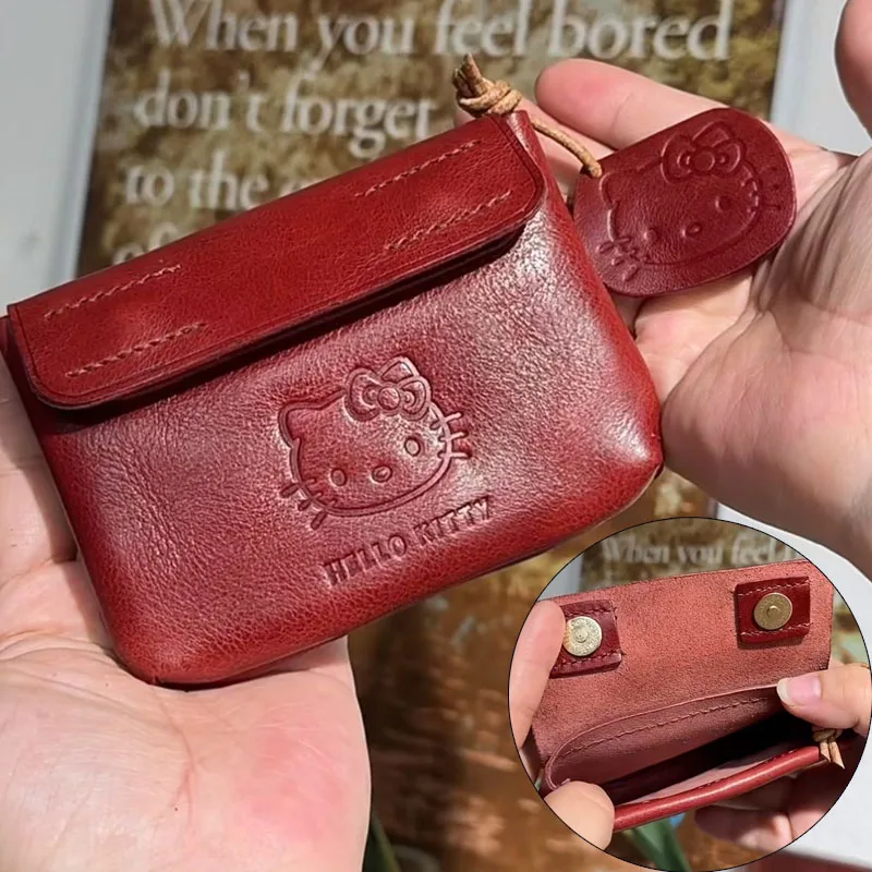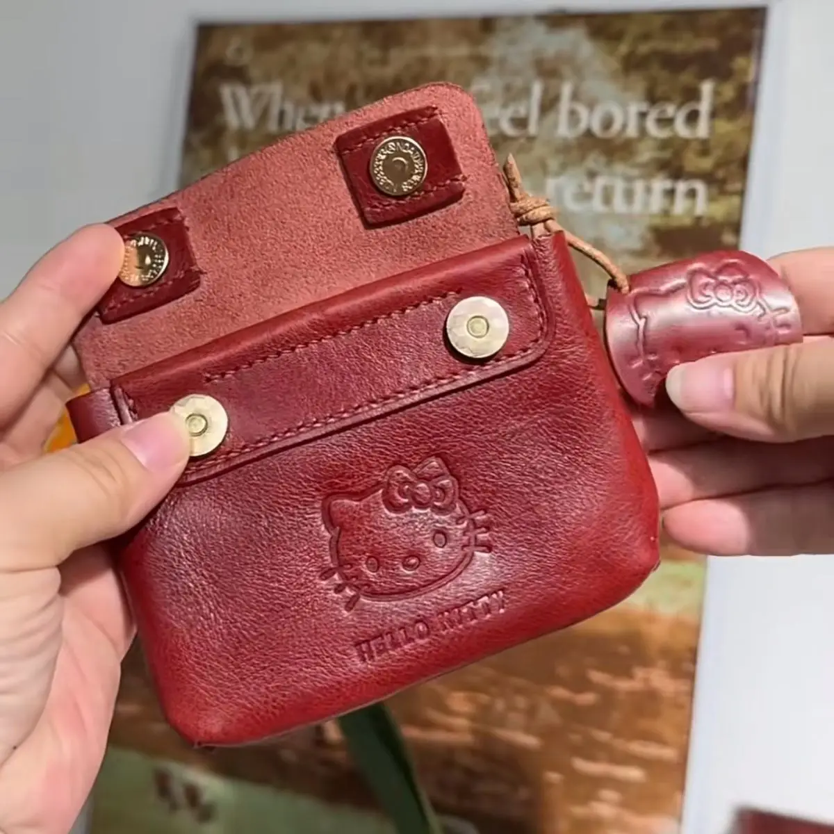 Comprar Bolso Hello Kitty, monedero Kawaii de cuero PU, cartera informal a la moda, bonito bolso ligero para tarjetas, cartera informal para mujer, tarjetero