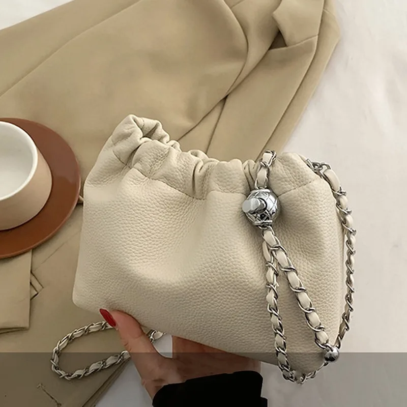 Comprar Bolso de hombro con cadena para mujer, bandolera femenina con pliegue de nube de sentido avanzado, de PU, con cadena de bola dorada