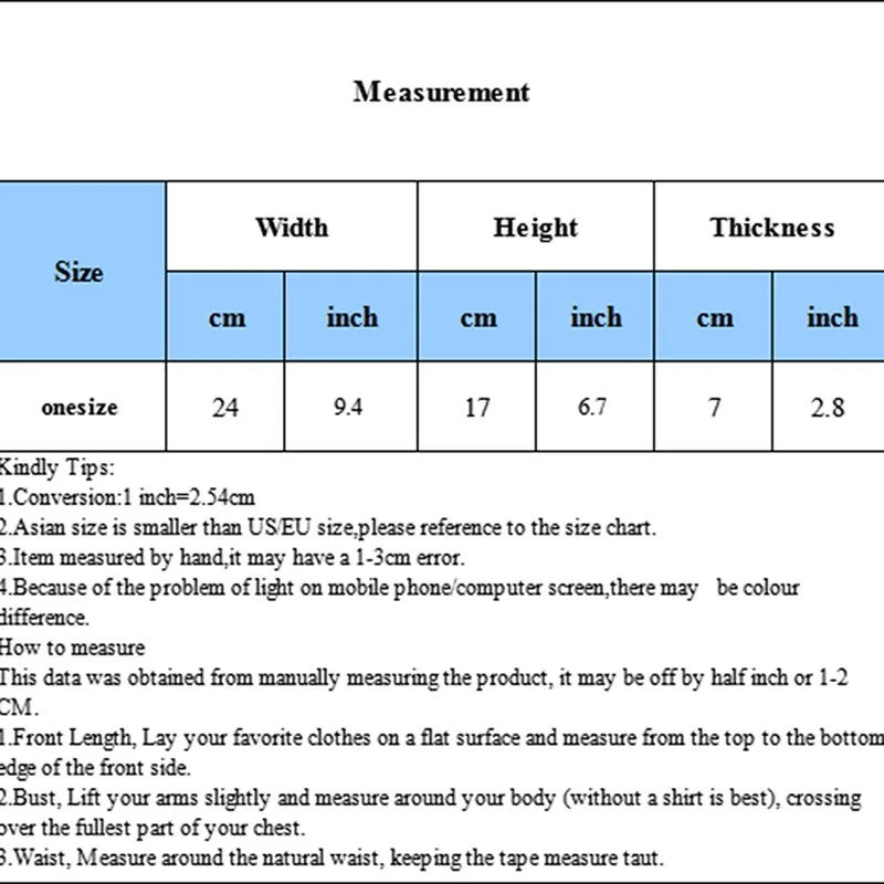 Color: como en la imagenConversión: 1 pulgada=2,54 cm, 1cm=0.393 pulgadasTamaño: largo * ancho * alto 24*17*7cm