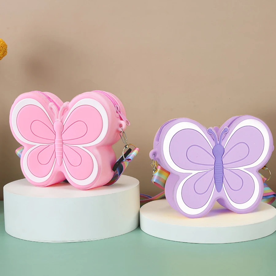 Comprar Bolso de hombro de silicona para niñas de 4 a 8 años, monedero de mariposa, bolso de hombro completo de color caramelo, cumpleaños