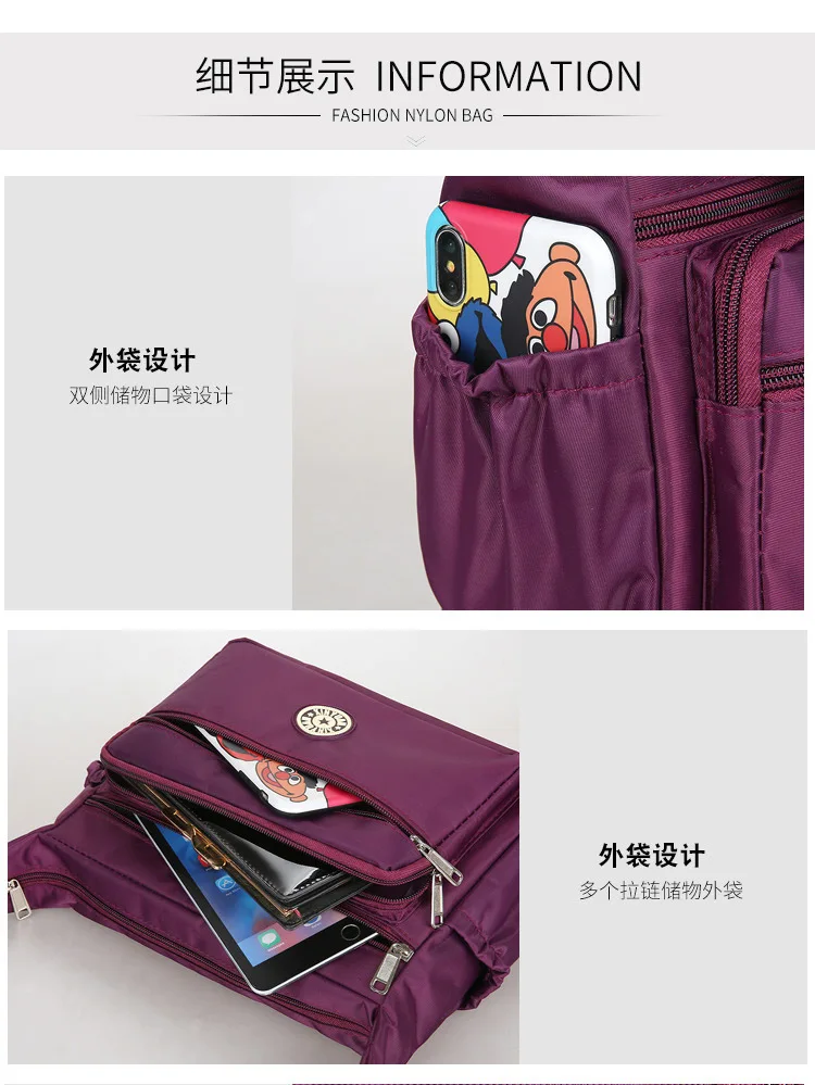 Bolso de lona Bolso de mujer Bolso de madre Bolsillo múltiple Impermeable Bolsas de compras de viaje de gran capacidad