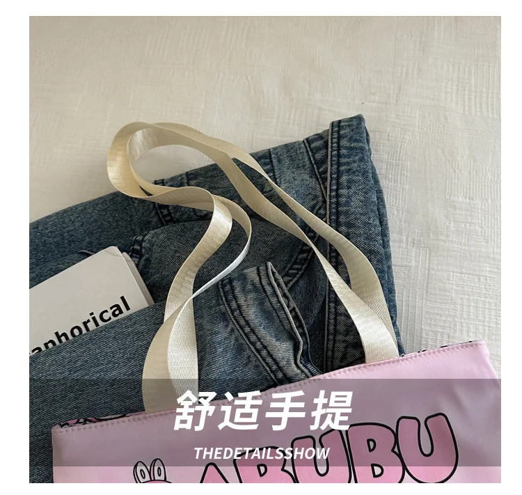 Bolso de lona The Monsters Labubu para mujer, bolsas de compras de Anime para mujer, bolsos grandes de tela para comestibles, bolso de mano para chica, bolsa para libros