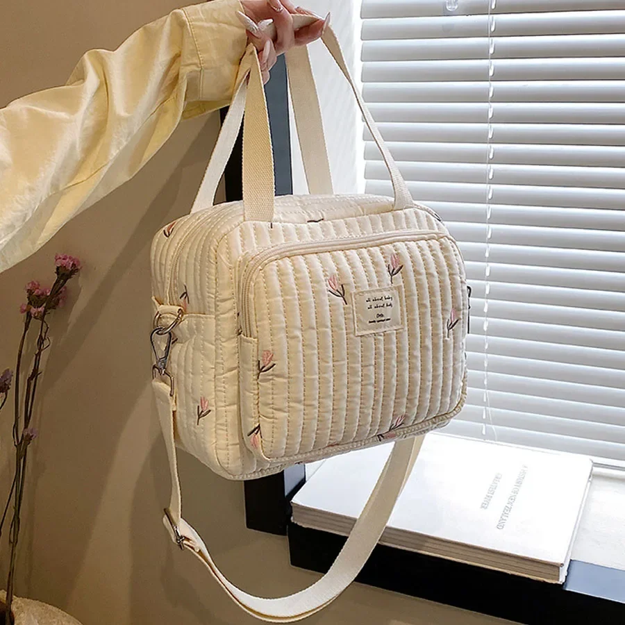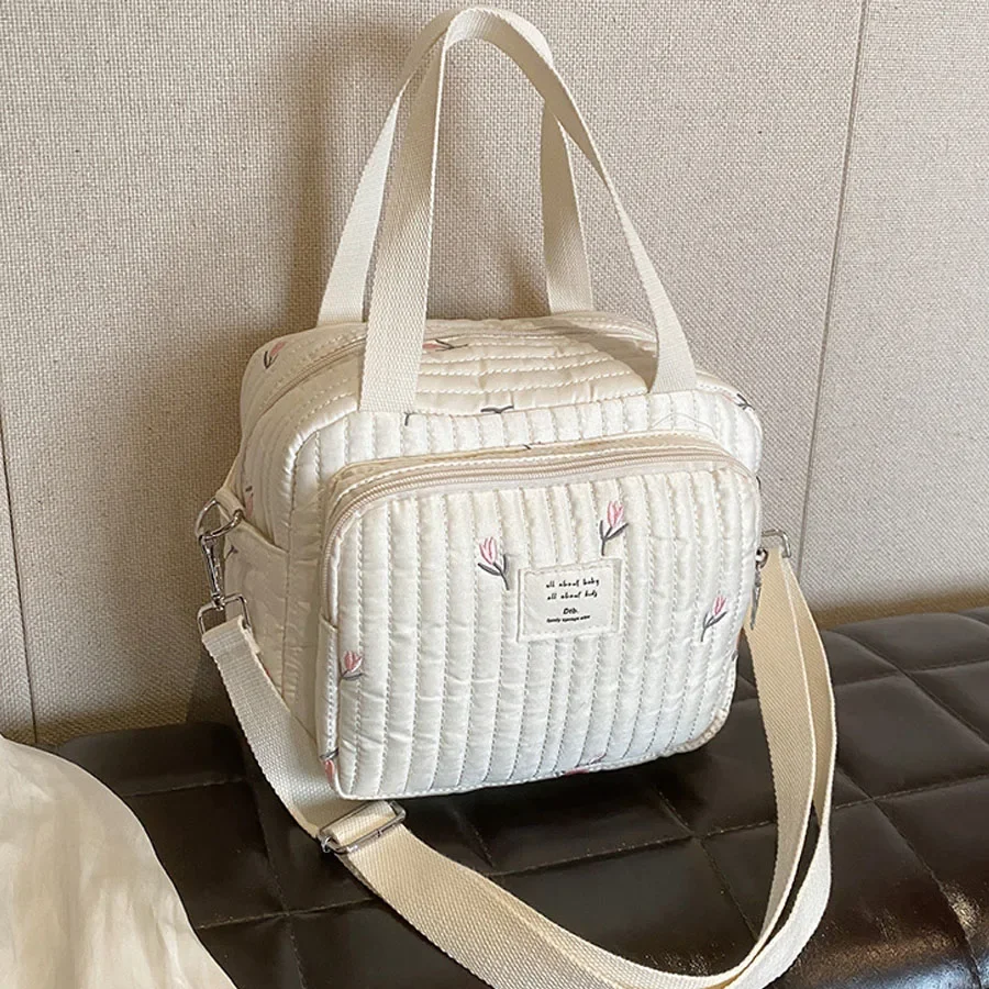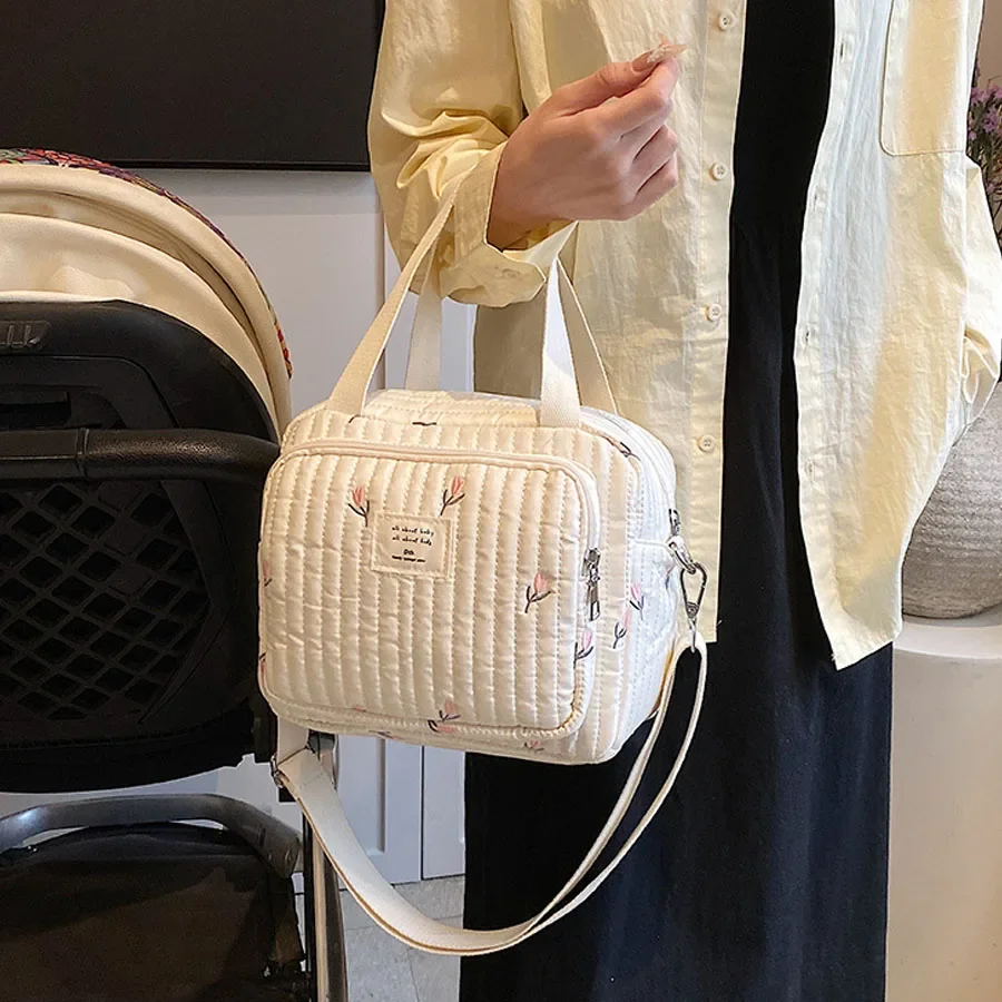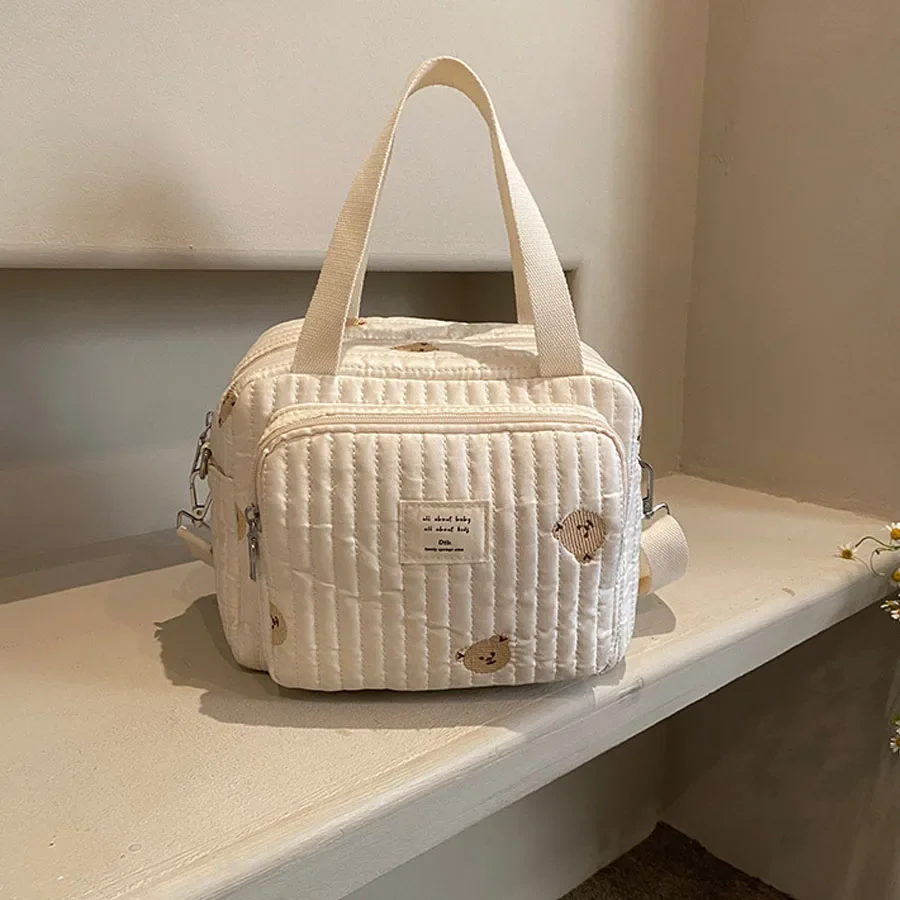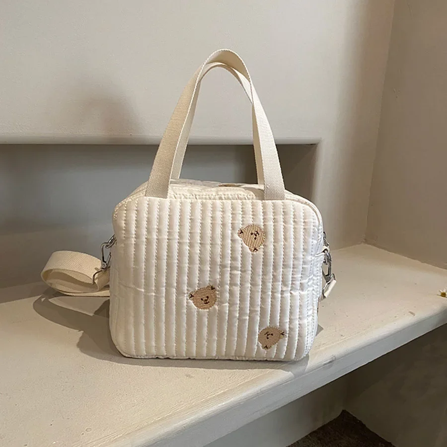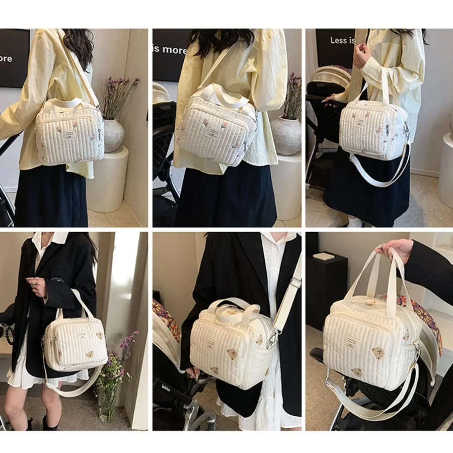 Comprar Bolso de mano para mamá, bolsa cruzada de gran capacidad, bolso de mano para pañales de bebé, oso bordado, flor, bolso de hombro de moda, almacenamiento portátil