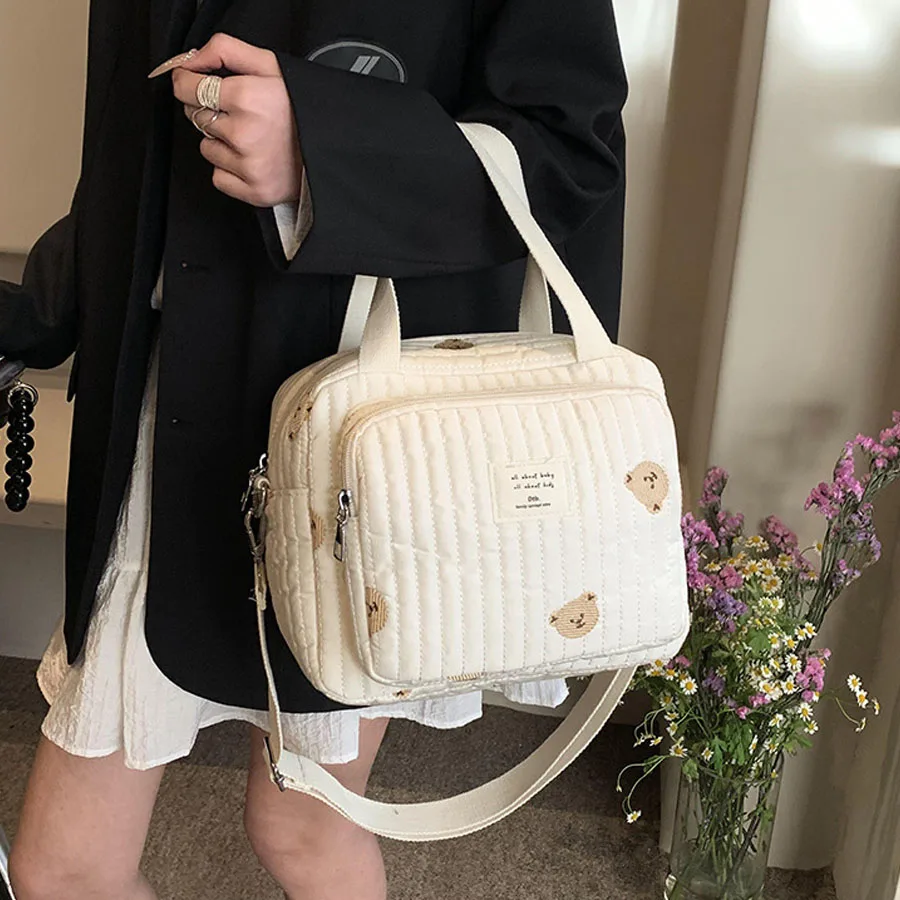 Comprar Bolso de mano para mamá, bolsa cruzada de gran capacidad, bolso de mano para pañales de bebé, oso bordado, flor, bolso de hombro de moda, almacenamiento portátil