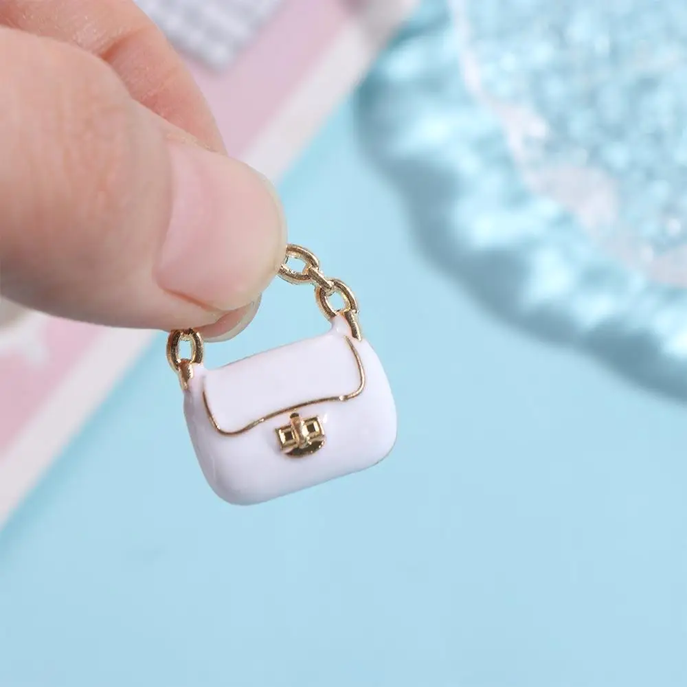 Comprar Bolso de mano de Metal en miniatura para casa de muñecas, monedero blanco y negro, accesorios de moda, decoración de escena, regalo de juguetes, 1:12
