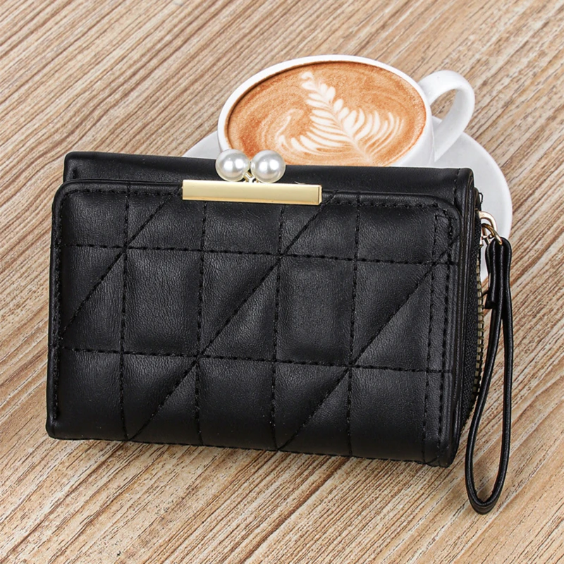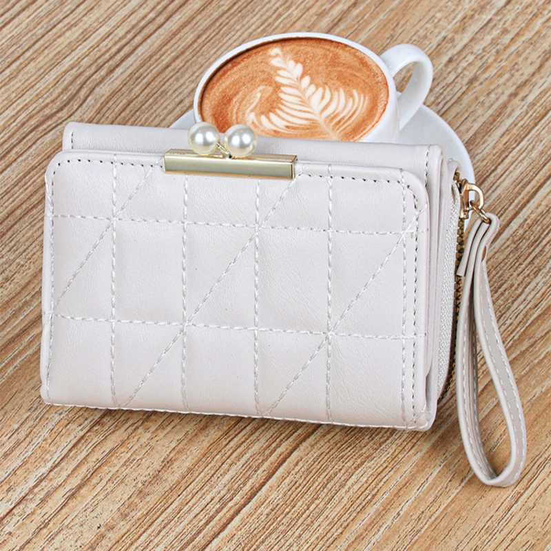 Comprar Bolso de mano con múltiples tarjetas para mujer, cartera de mano con perla de color puro, bolso de billete grande triple