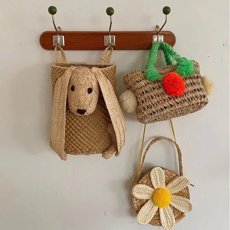 Comprar Bolso de mano tejido a mano para niños, bolso de paja con flor de Margarita, bolso de moda para niñas lindas, ropa al aire libre con bolso de bebé, nuevo