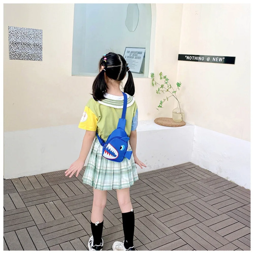 Comprar Bolso de pecho de lona con estampado de tiburón, bolsa cruzada con cremallera, cintura de tiburón de dibujos animados, alta calidad