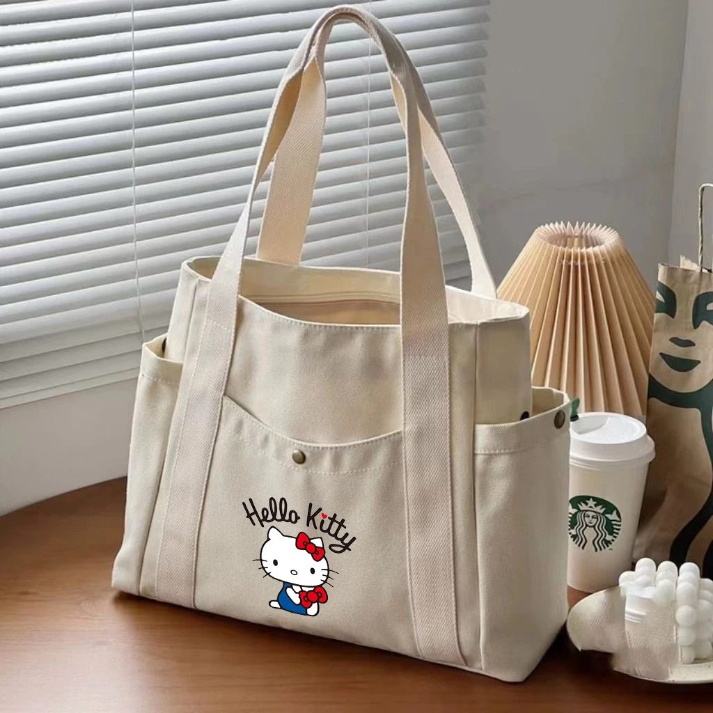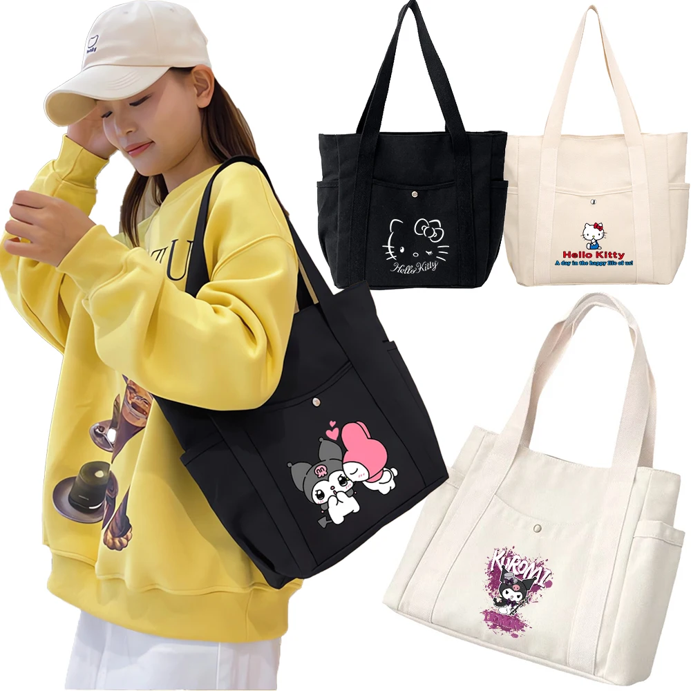 Bolsos de lona de Hello Kitty Kuromi para estudiantes, bolsos de dibujos animados, figuras de Anime periféricas, bolsos de mano casuales de gran capacidad, regalos para niñas