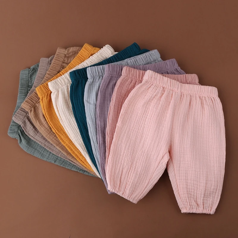 Bombachos de algodón para niños pequeños, bombachos informales de Color sólido para arrugas, pantalones largos holgados para niños y niñas, novedad de verano 2021