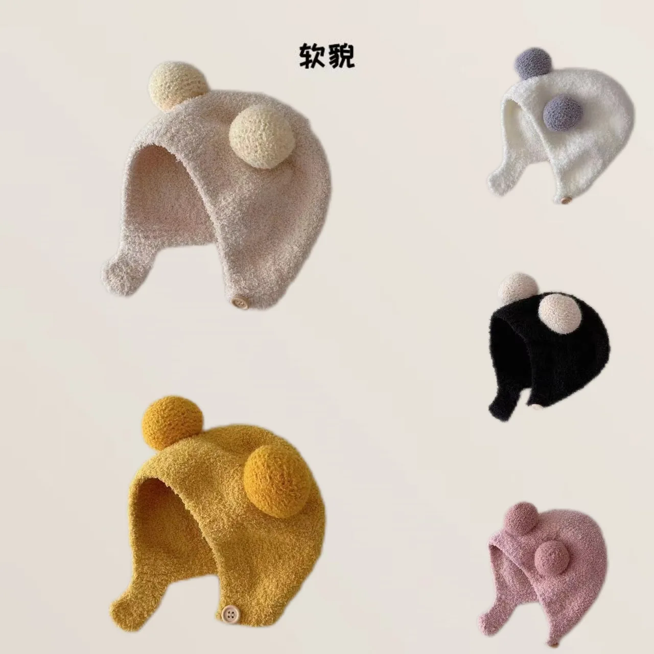 Bonita Bola de bola para niños, con tiras Pullover, sombrero de invierno para hombres y mujeres, protección para los oídos para bebés, gorro cálido para bebés