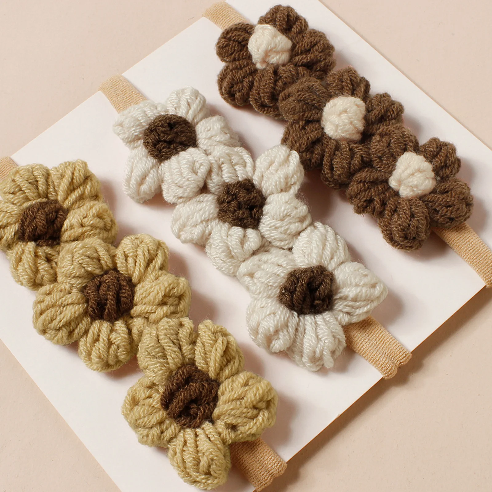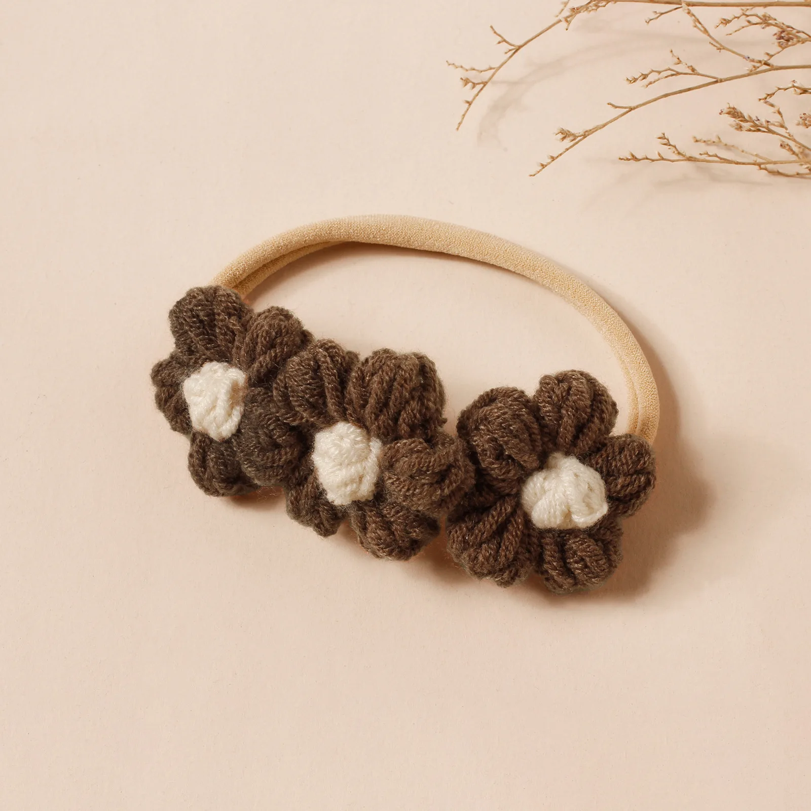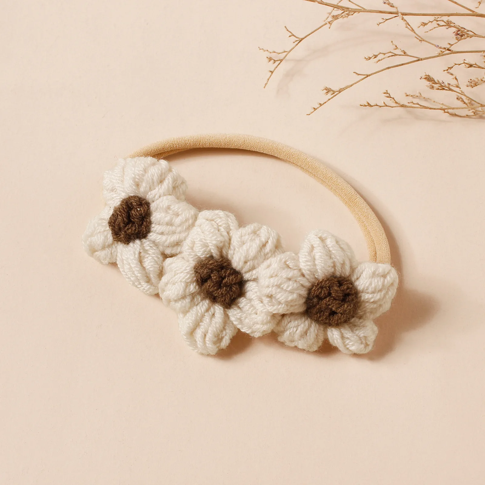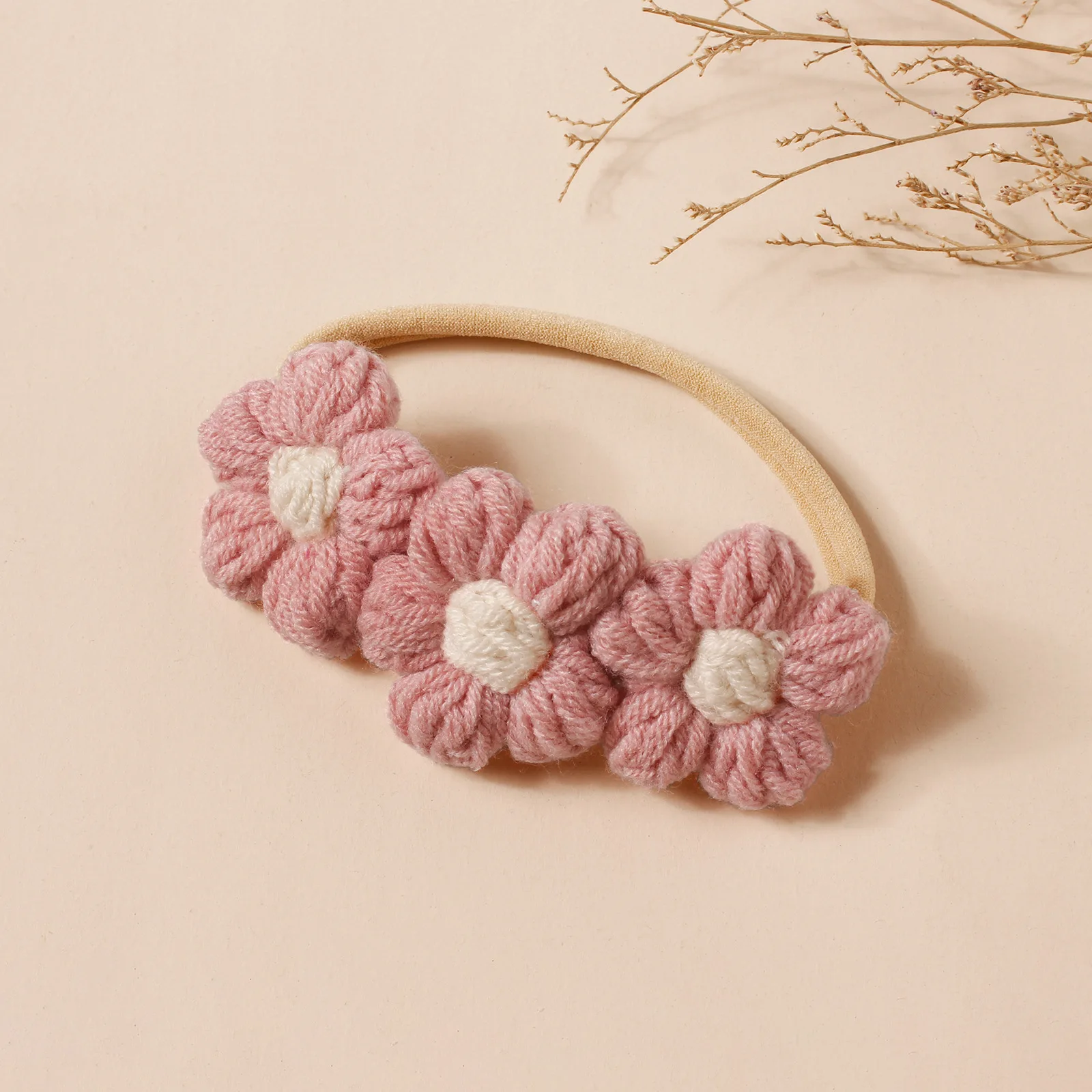 Bonita y encantadora diadema tejida con flores para bebé, diadema tejida para el pelo para niña, gorro suave para recién nacido, accesorios para el cabello tejidos