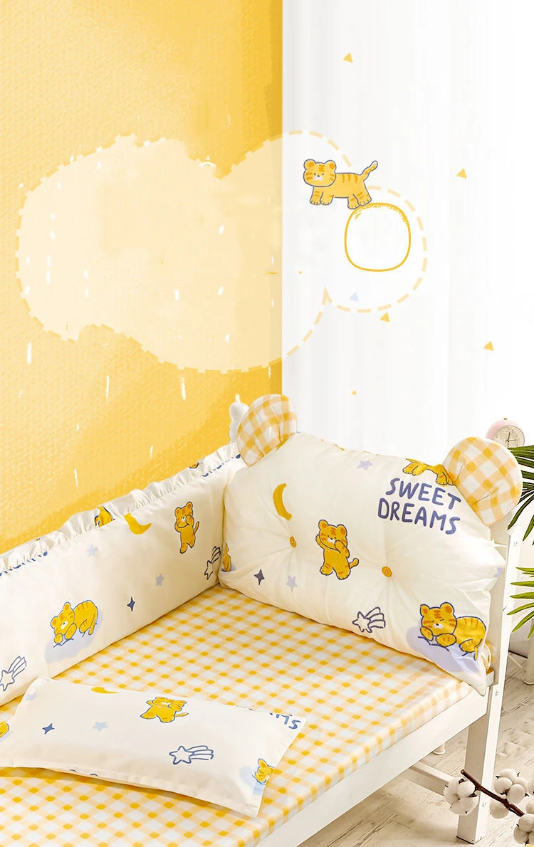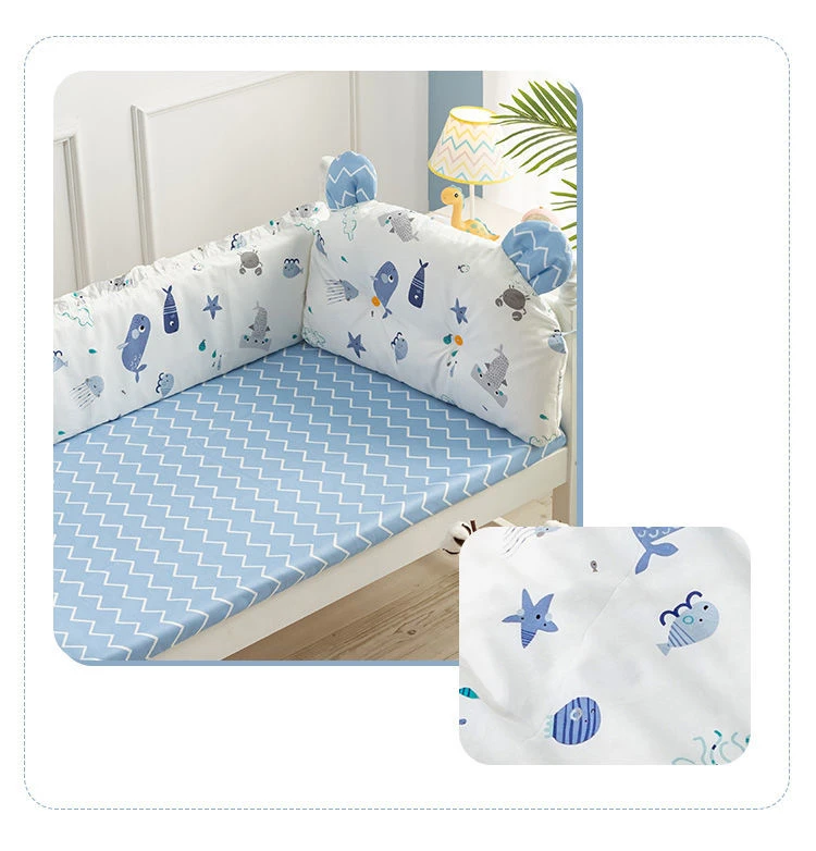Nombre del producto: Surround de cama de cama de empalme para niños lindosJuego de 4 piezas=3 parachoques + 1 sábana.