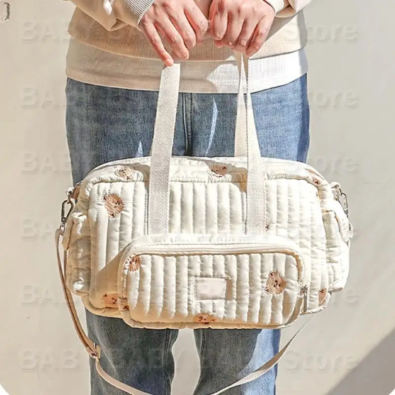 Características:OOTDTYBolso momia, bolso portátil, bolso de almacenamiento de productos para madres y bebés, bandolera simple de gran capacidad.