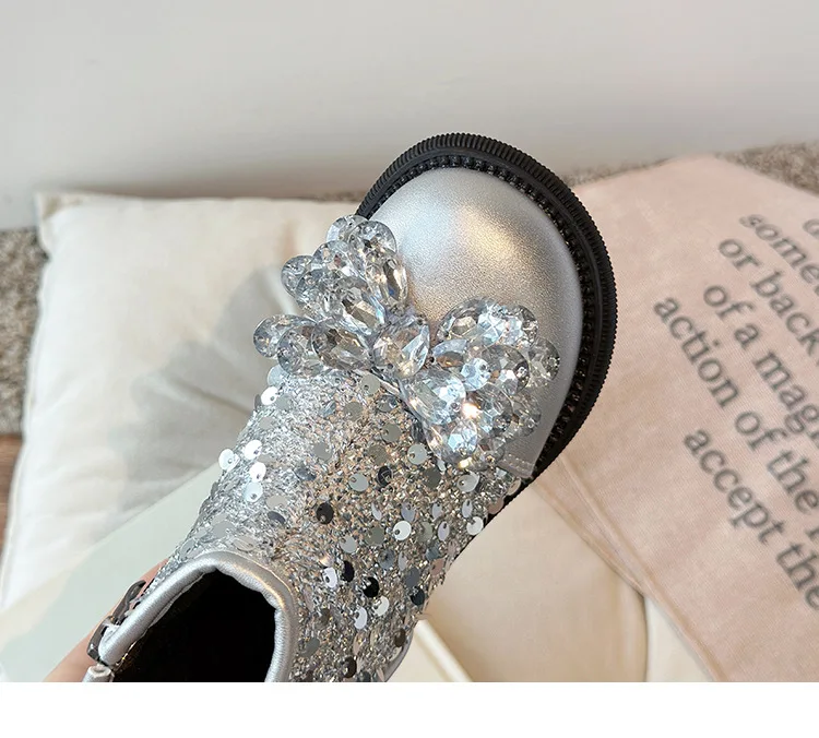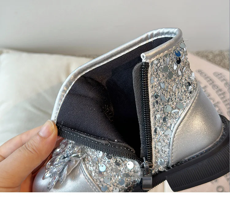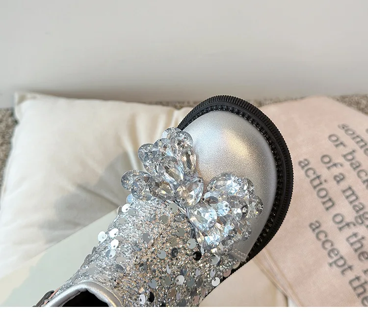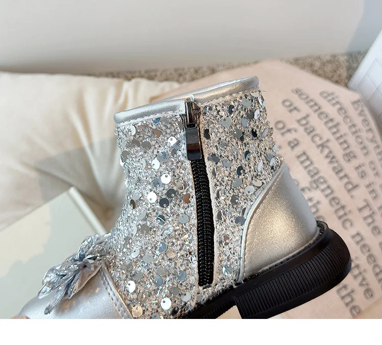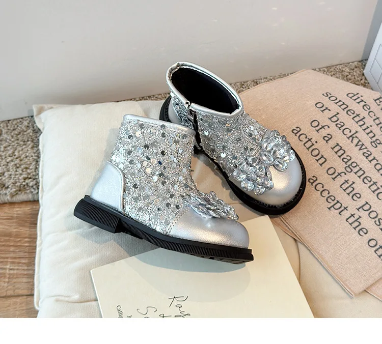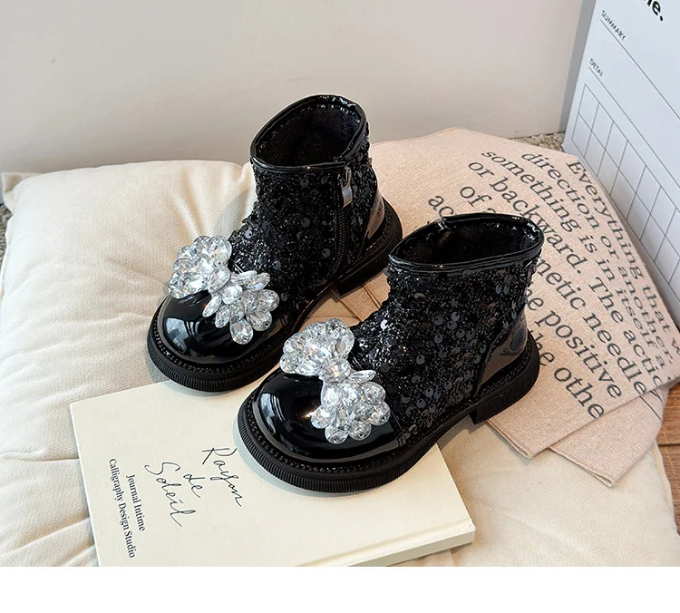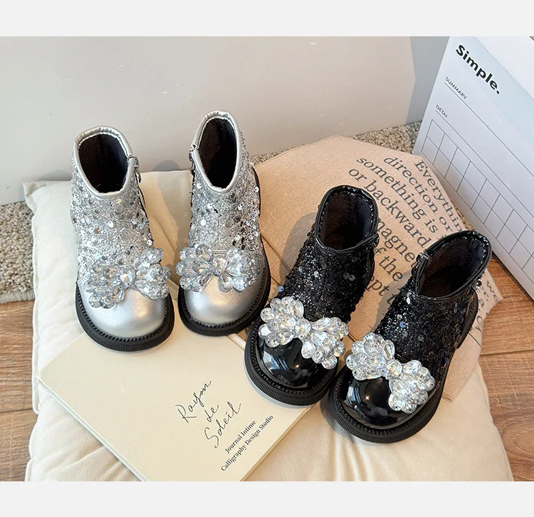 Bota de invierno para niños 2025, nueva versión coreana, botas planas para niños, botas de princesa antideslizantes a la moda para niñas, botas cortas de otoño para niñas