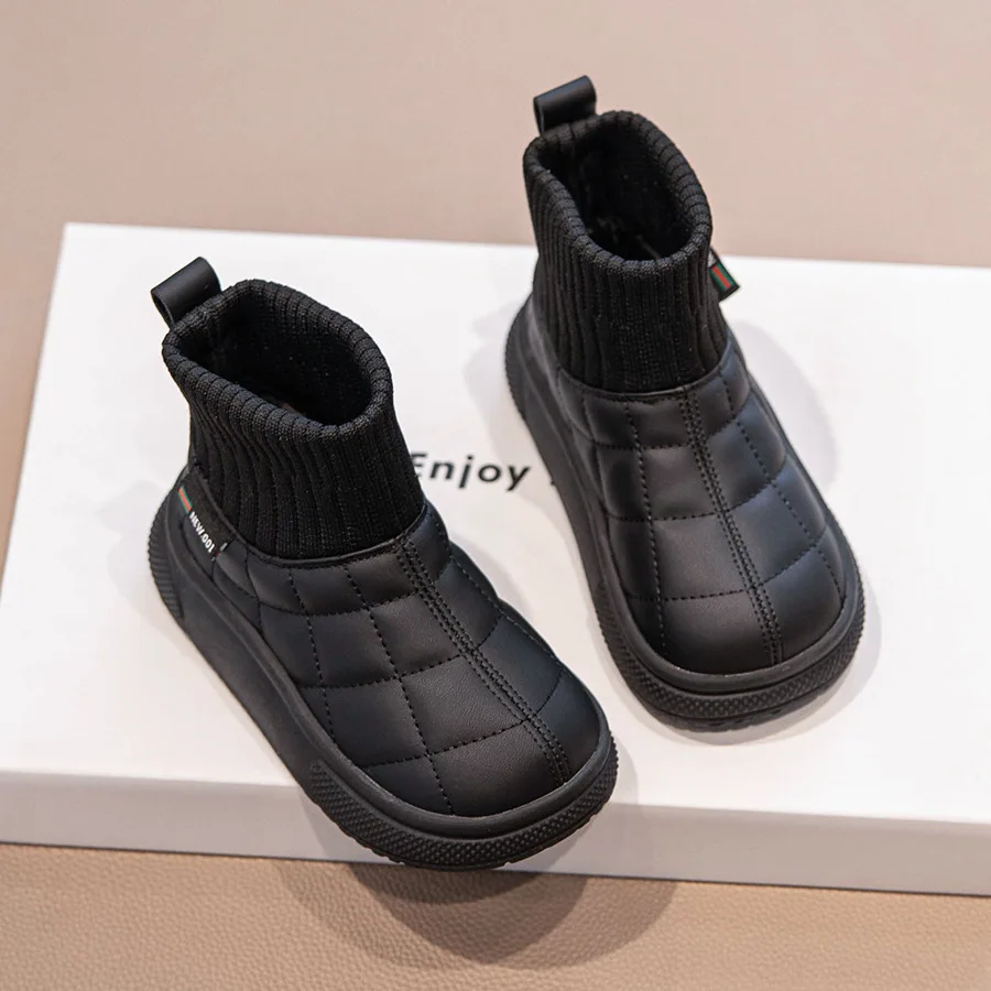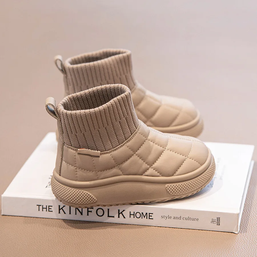 Bota de invierno para niños, novedad de 2025, bota Retro plana y cálida para bebé, bota informal a la moda para niñas, botas de nieve de terciopelo antideslizantes, botas cortas de otoño