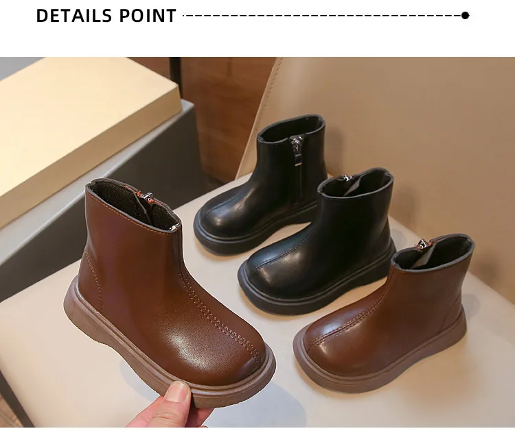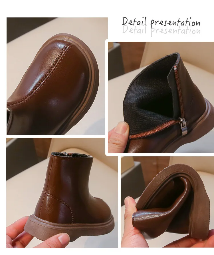 Bota de nieve para niños, otoño 2021, nueva bota cálida de felpa para bebé, zapatos antideslizantes de estilo británico a la moda para niñas, botas cortas versátiles para hombres y mujeres