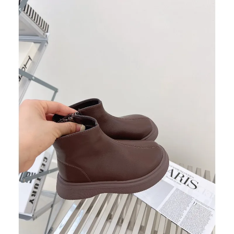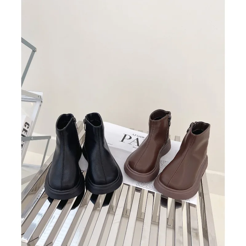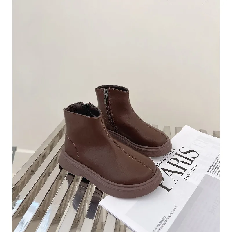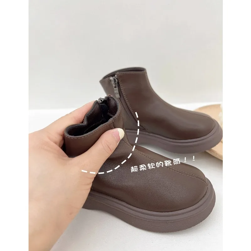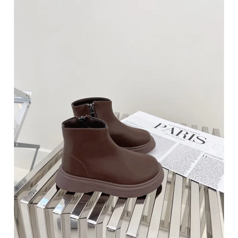 Botas de estilo británico para niños, botas de nieve de terciopelo, moda de otoño, antideslizantes, cómodas, para invierno, 2025
