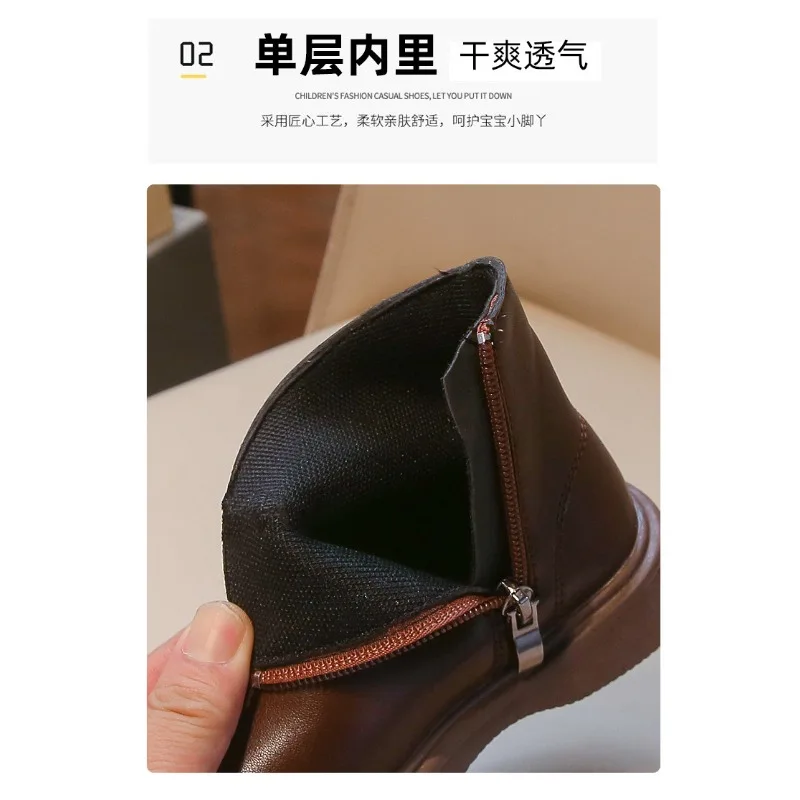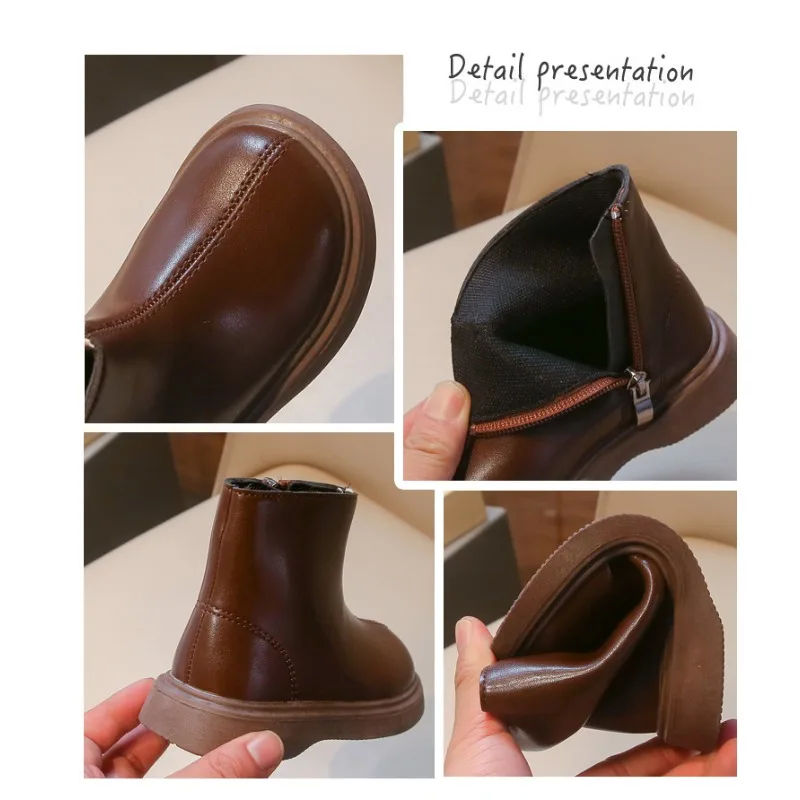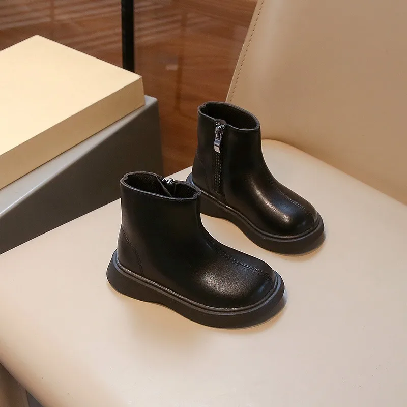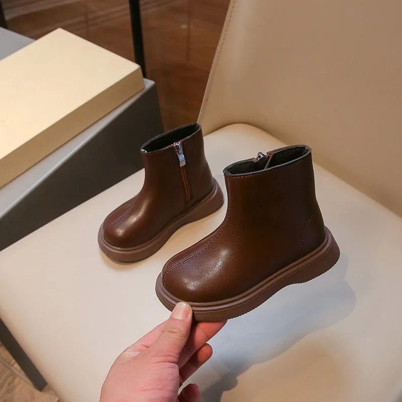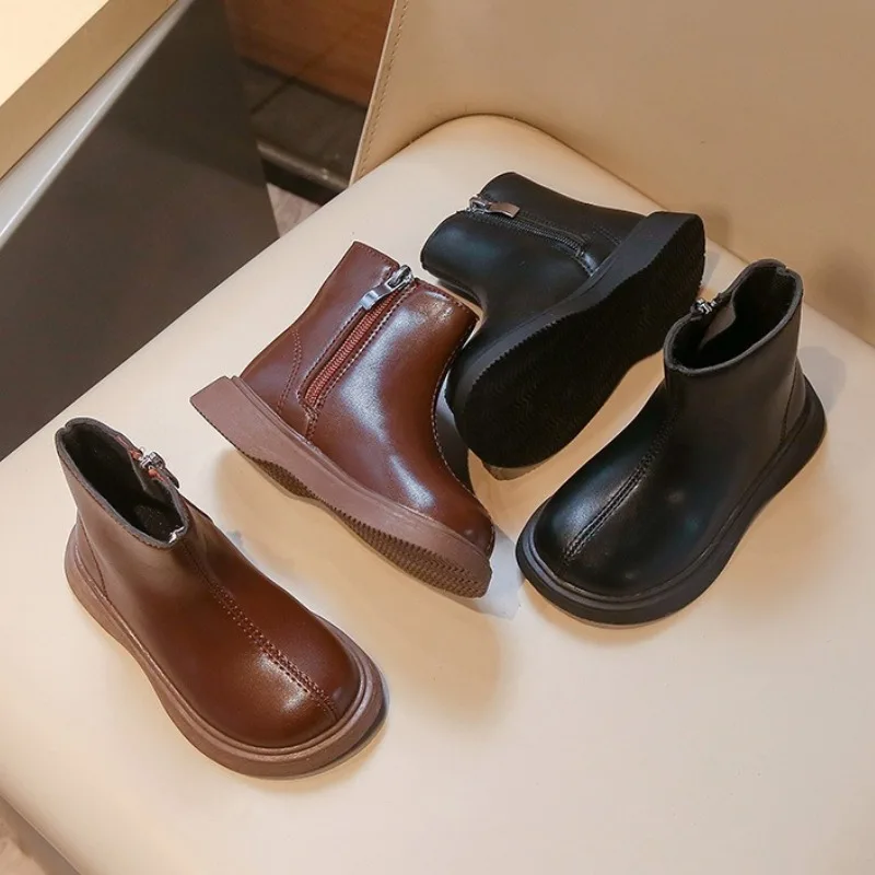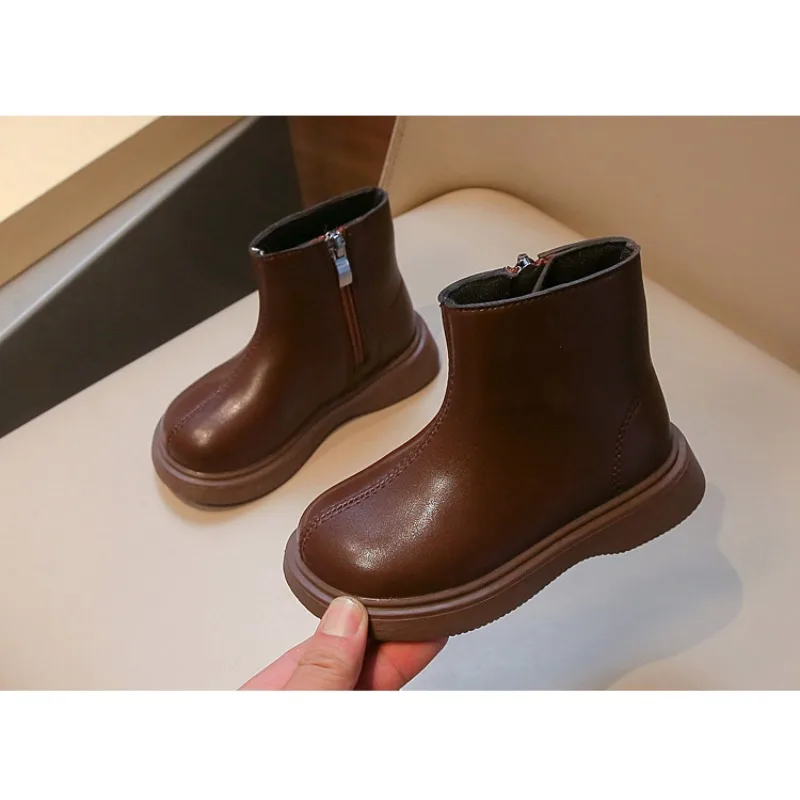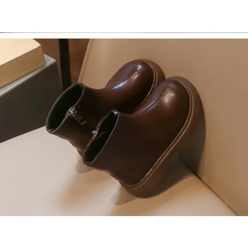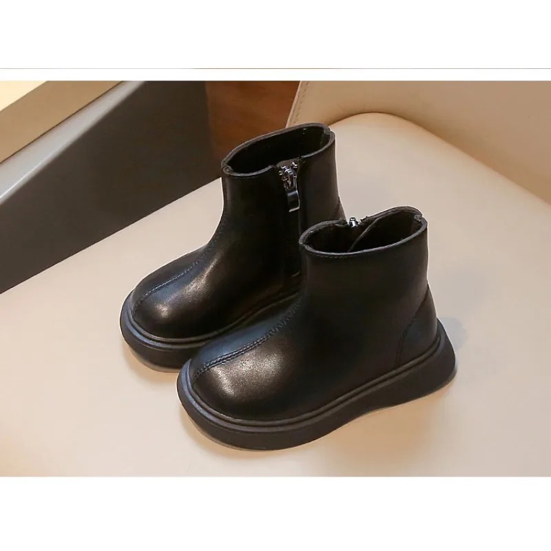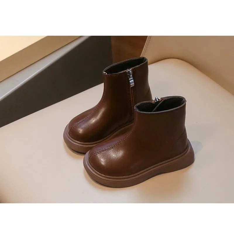 Botas de estilo británico para niños, zapatos de terciopelo de fondo plano para niños, versión coreana, zapatos de moda para niñas, botas cortas para niñas 2025