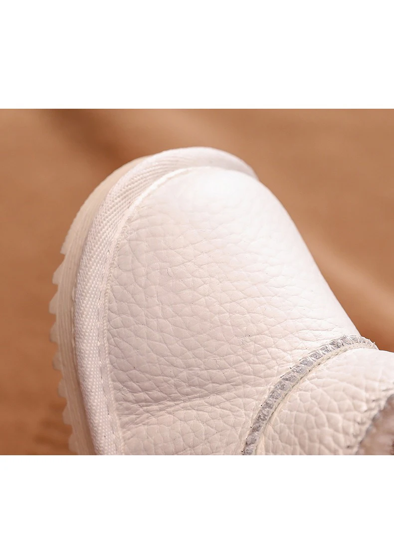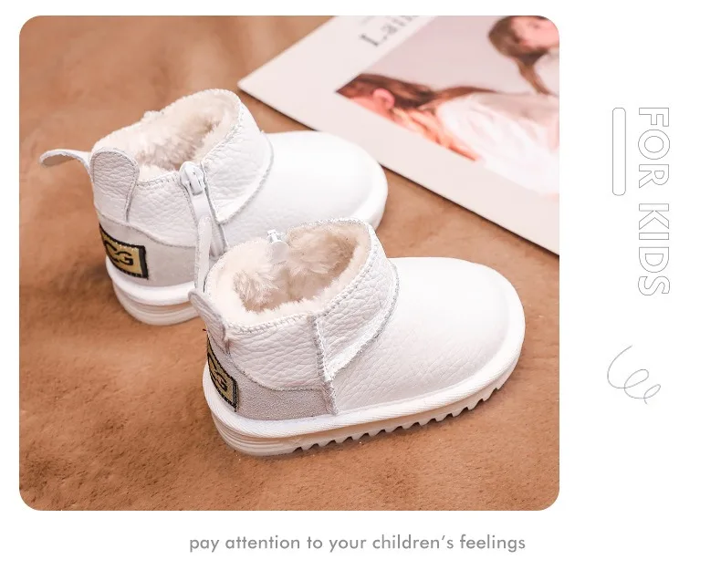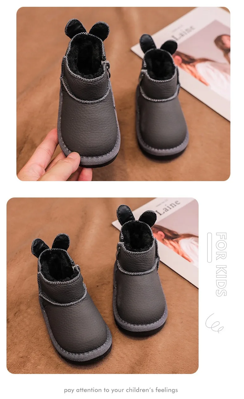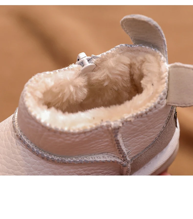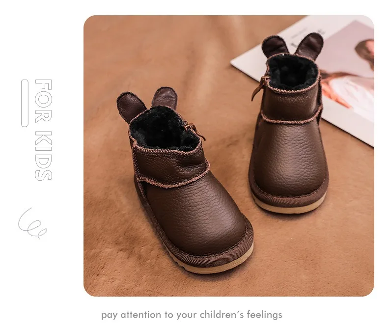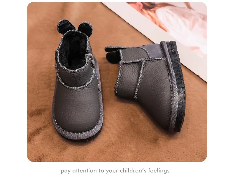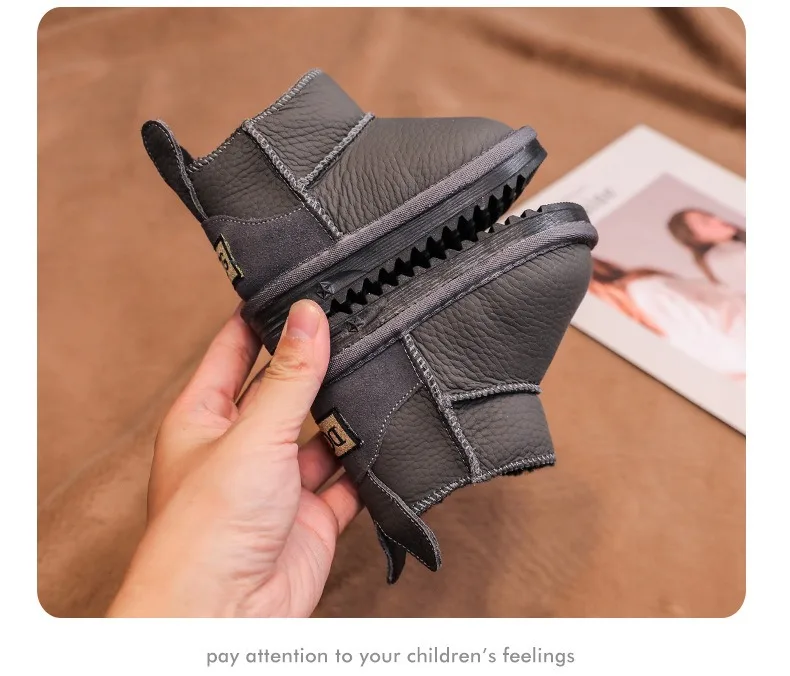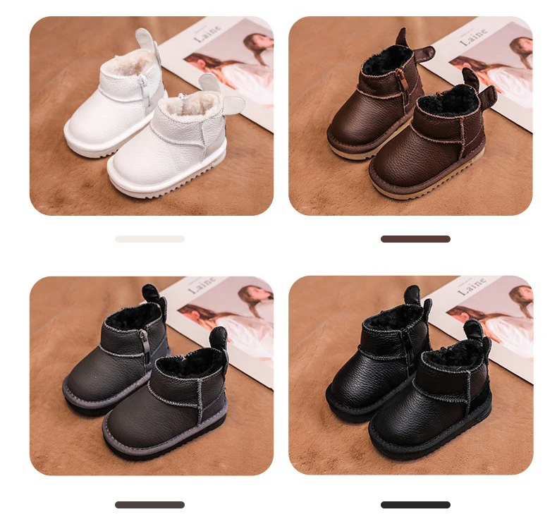 Botas de invierno de cuero genuino para niños, zapatos para bebés y niños, botas de nieve infantiles de felpa, zapatos antideslizantes de suela blanda para niños pequeños