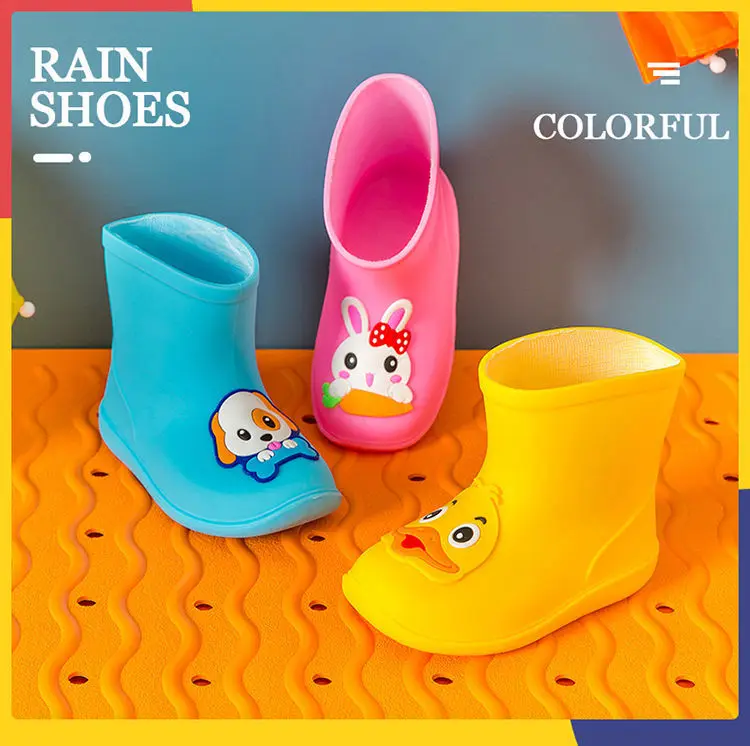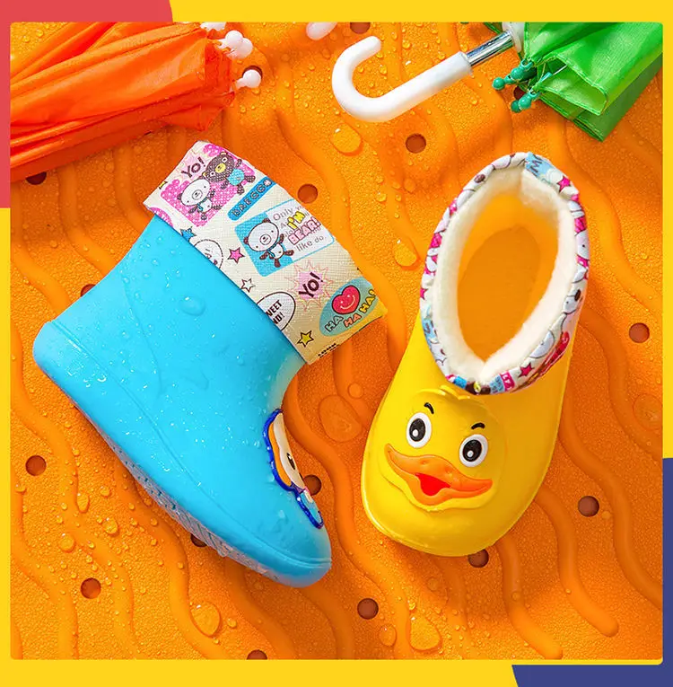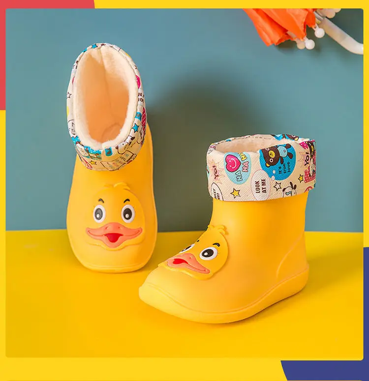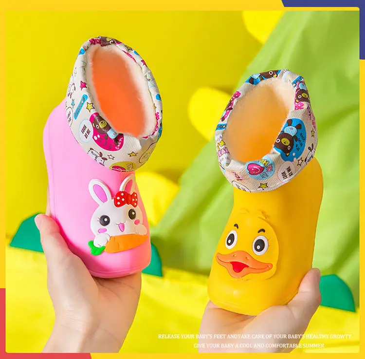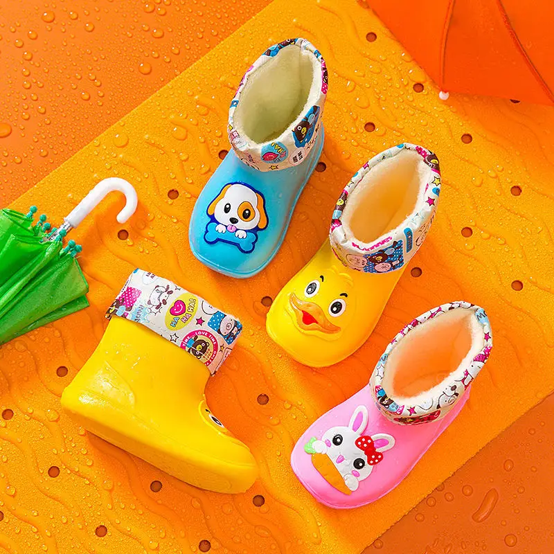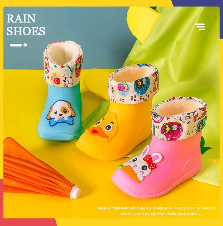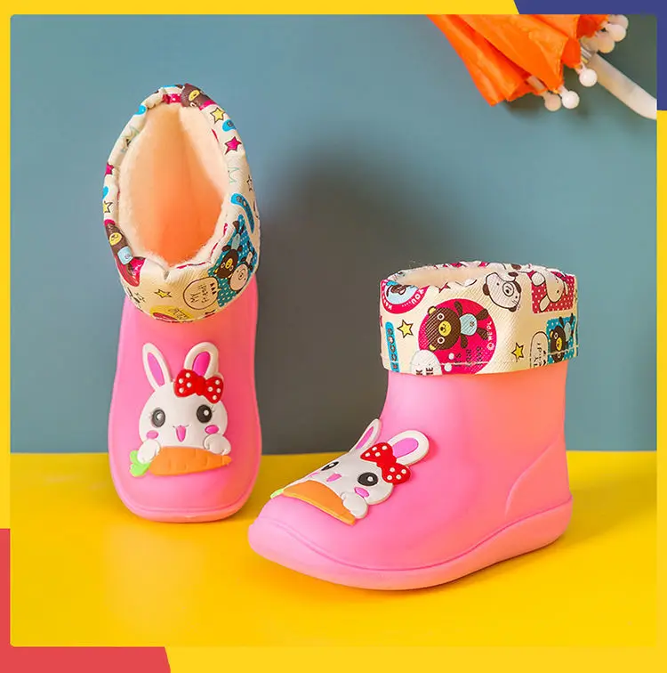 Comprar Botas de lluvia para niños, zapatos de agua antideslizantes impermeables de PVC para niñas, botas de goma para bebés con bonitos dibujos, además de botas de agua cálidas de algodón para niños