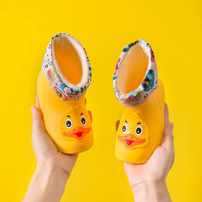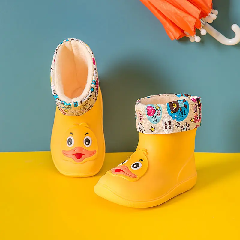 Comprar Botas de lluvia para niños, zapatos de agua antideslizantes impermeables de PVC para niñas, botas de goma para bebés con bonitos dibujos, además de botas de agua cálidas de algodón para niños