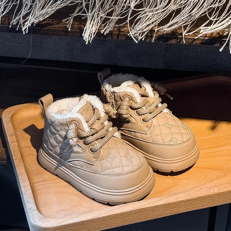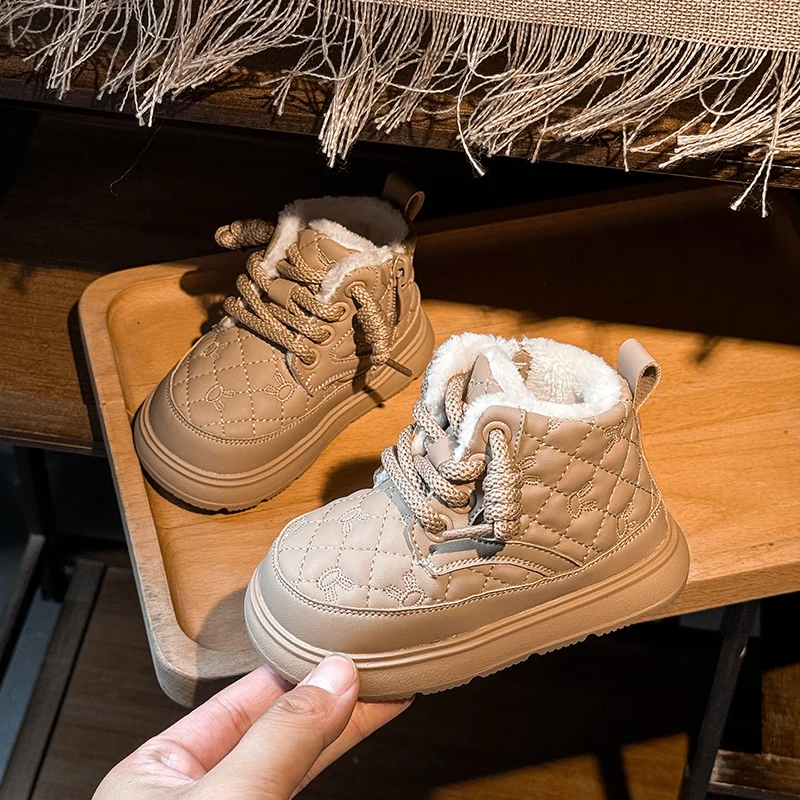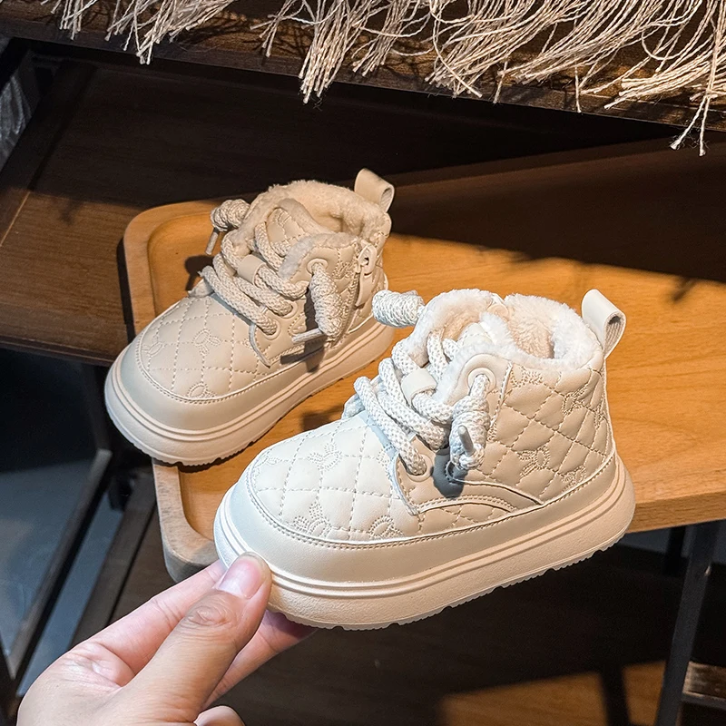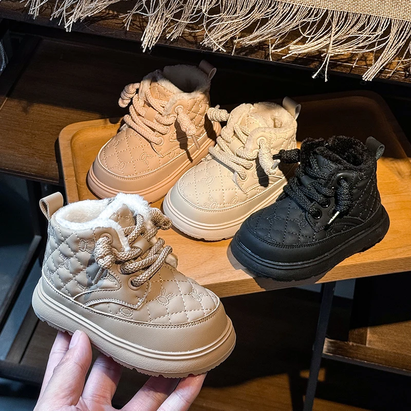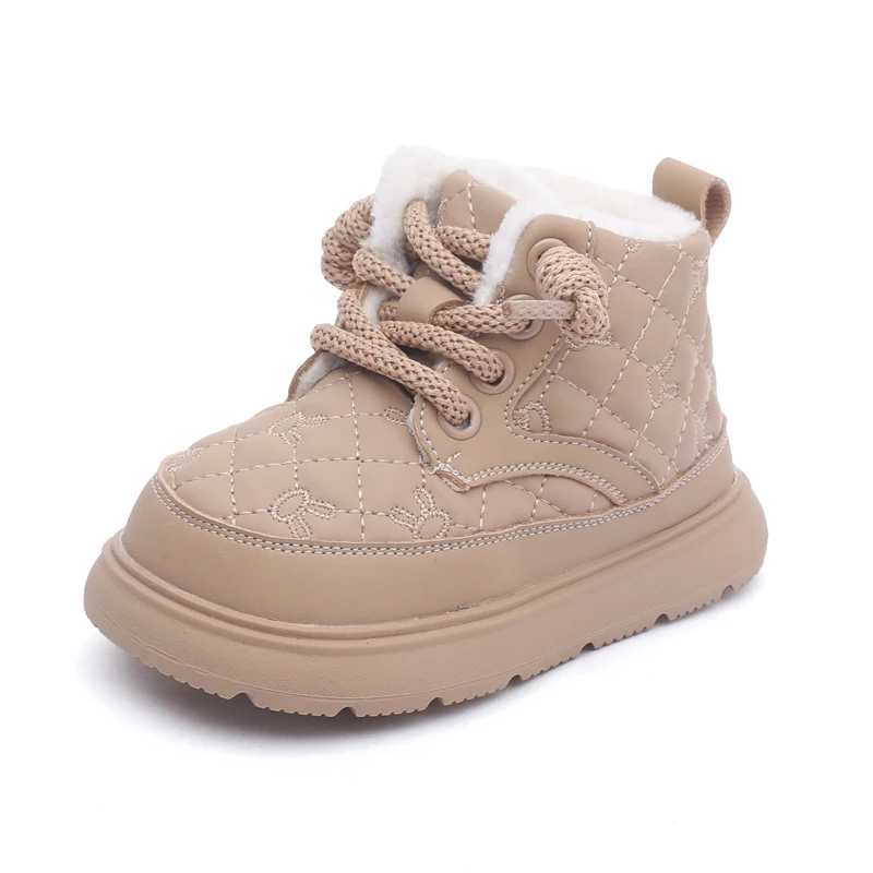 Comprar Botas de nieve para bebés y niños, botas de exterior para otoño e invierno, a prueba de viento, impermeables, antideslizantes, suela suave, zapatos de felpa para niños pequeños