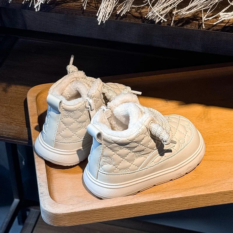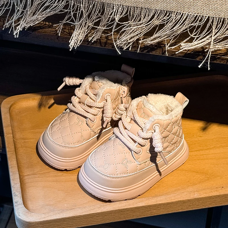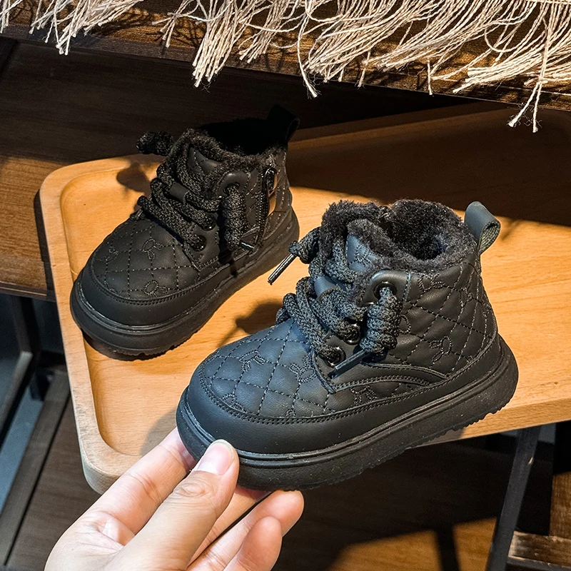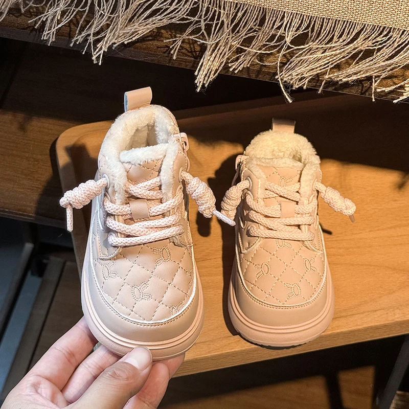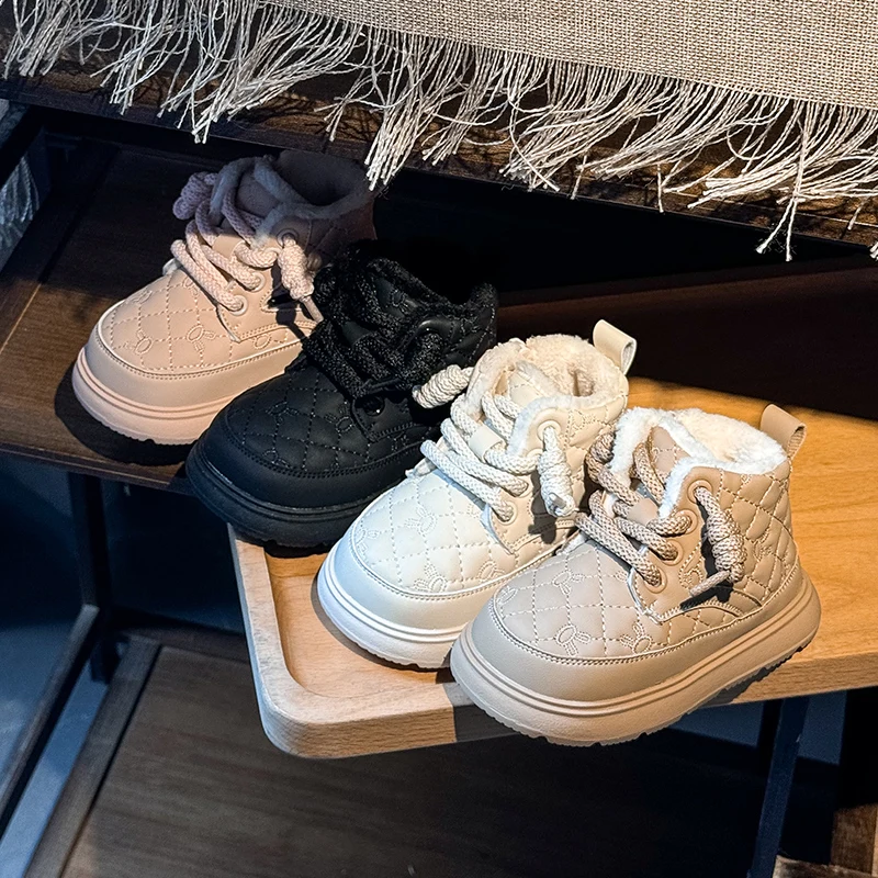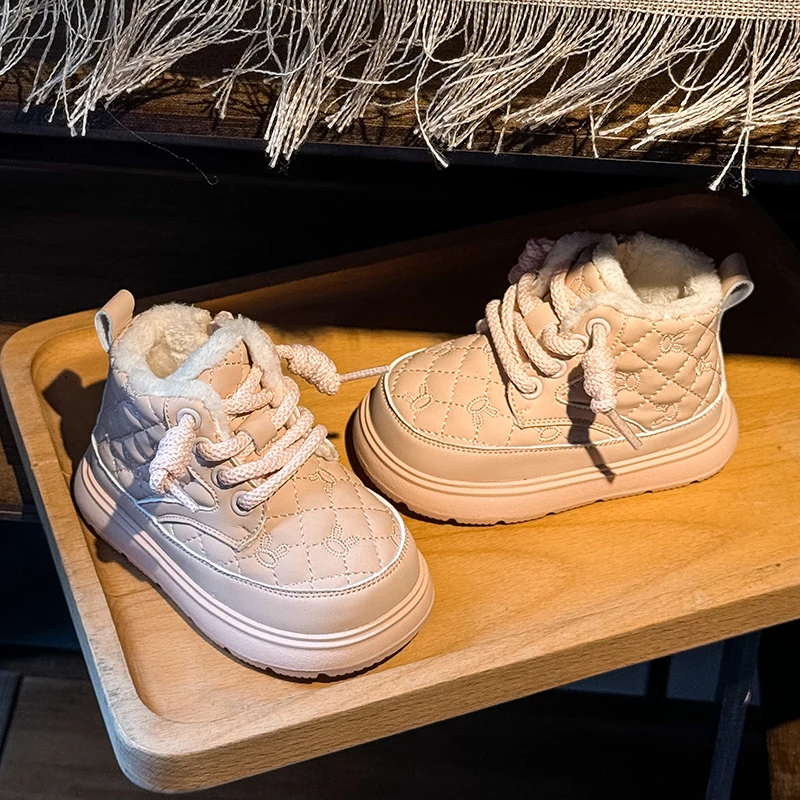 Comprar Botas de nieve para bebés y niños, botas de exterior para otoño e invierno, a prueba de viento, impermeables, antideslizantes, suela suave, zapatos de felpa para niños pequeños