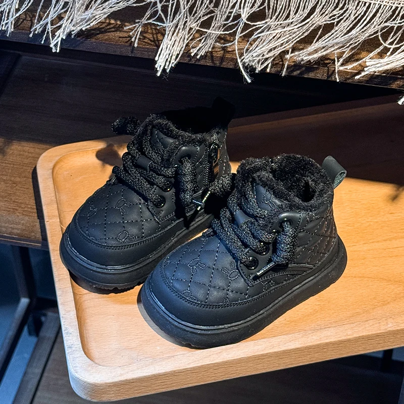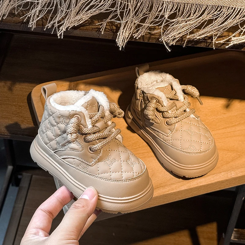 Comprar Botas de nieve para bebés y niños, botas de exterior para otoño e invierno, a prueba de viento, impermeables, antideslizantes, suela suave, zapatos de felpa para niños pequeños