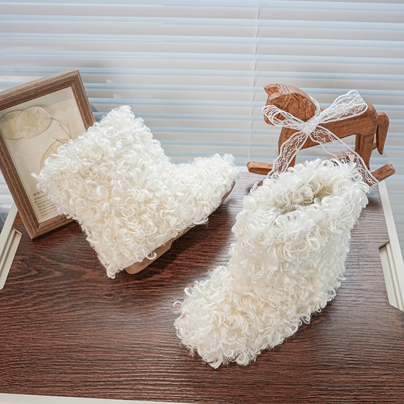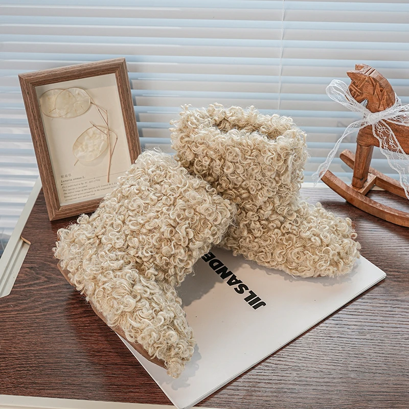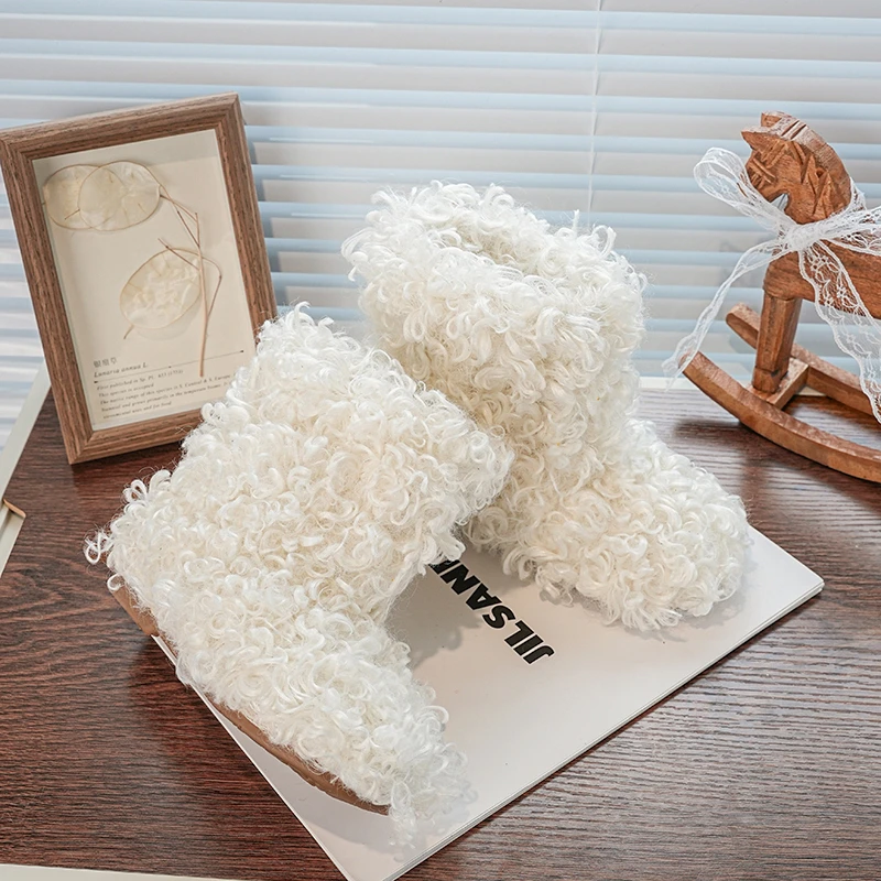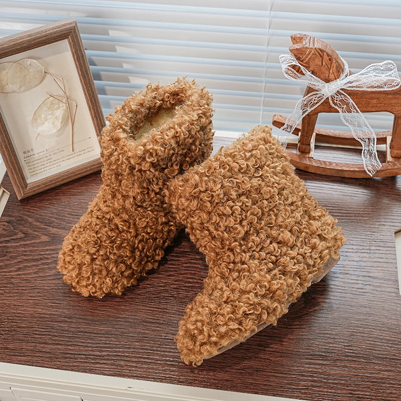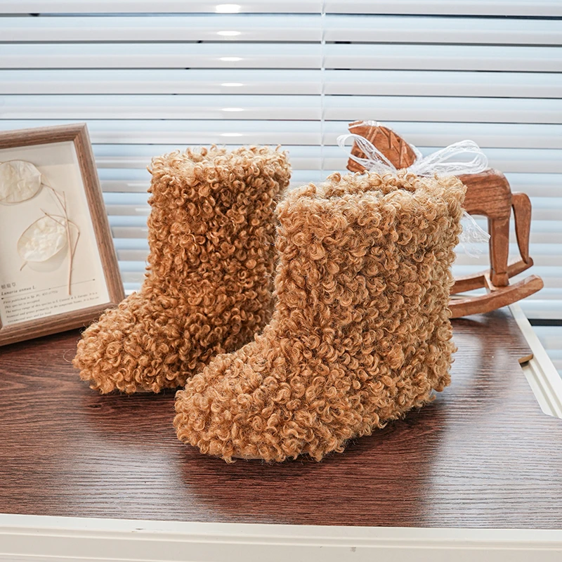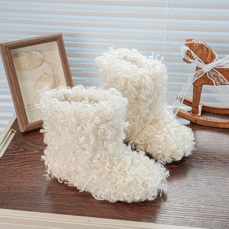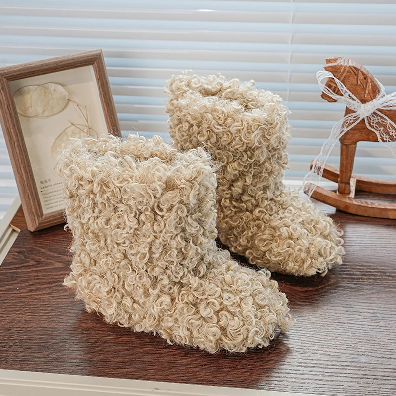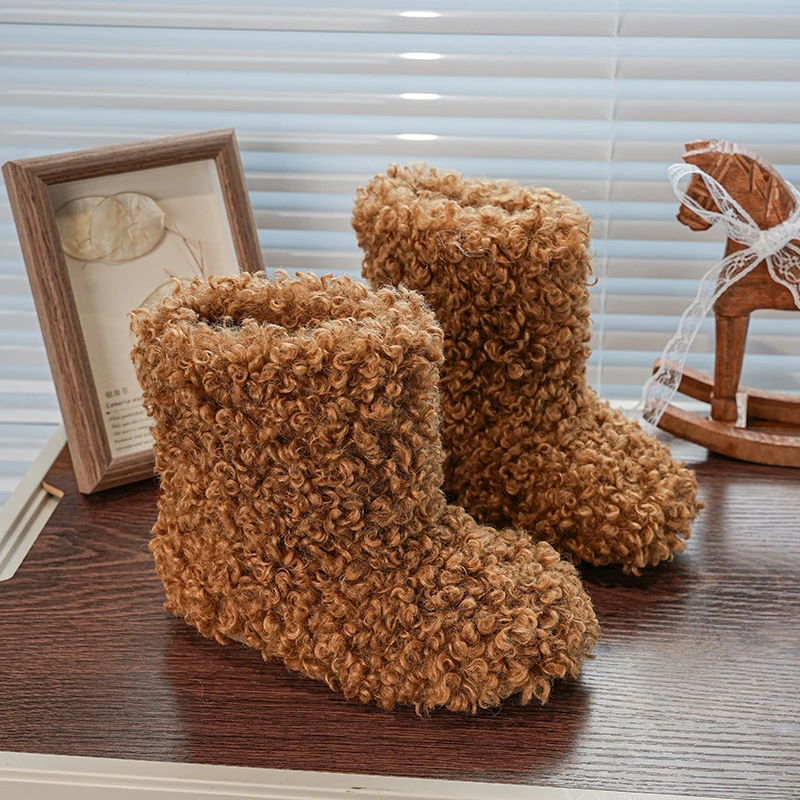Botas de nieve para bebés y niños, zapatos de otoño e invierno para niños pequeños, botas altas de felpa, zapatos antideslizantes de suela blanda para estudiantes