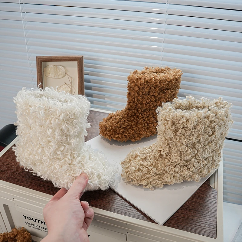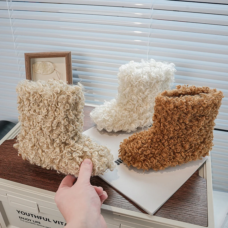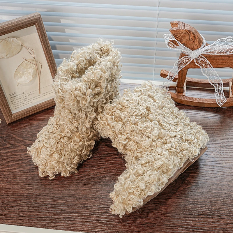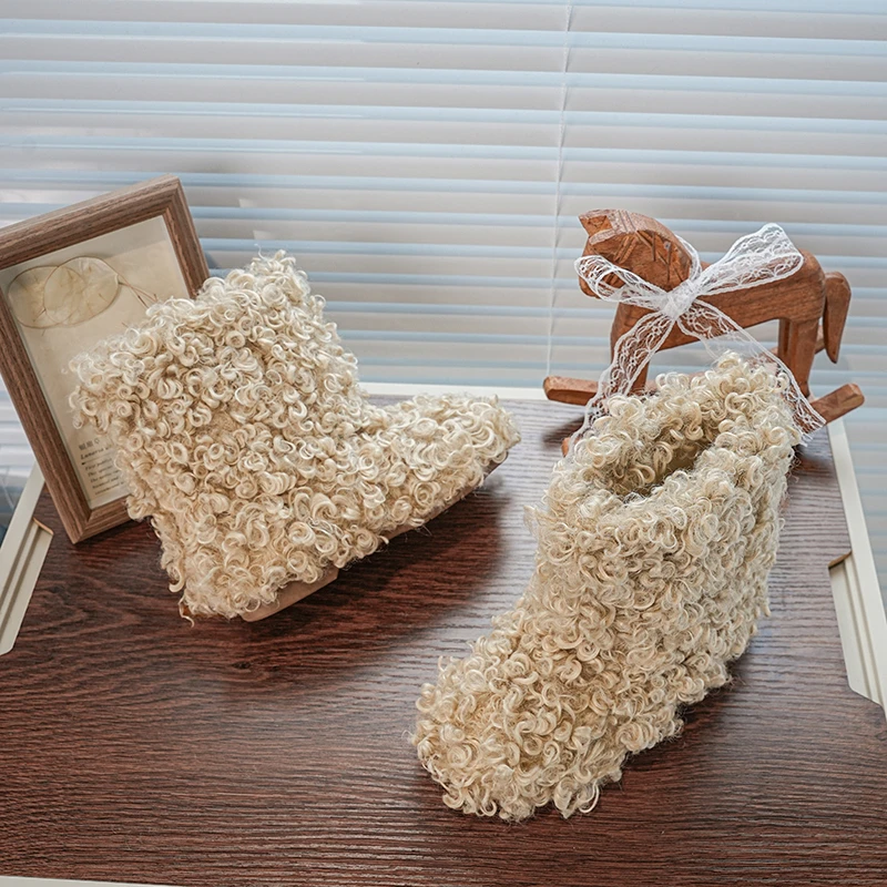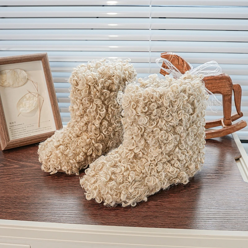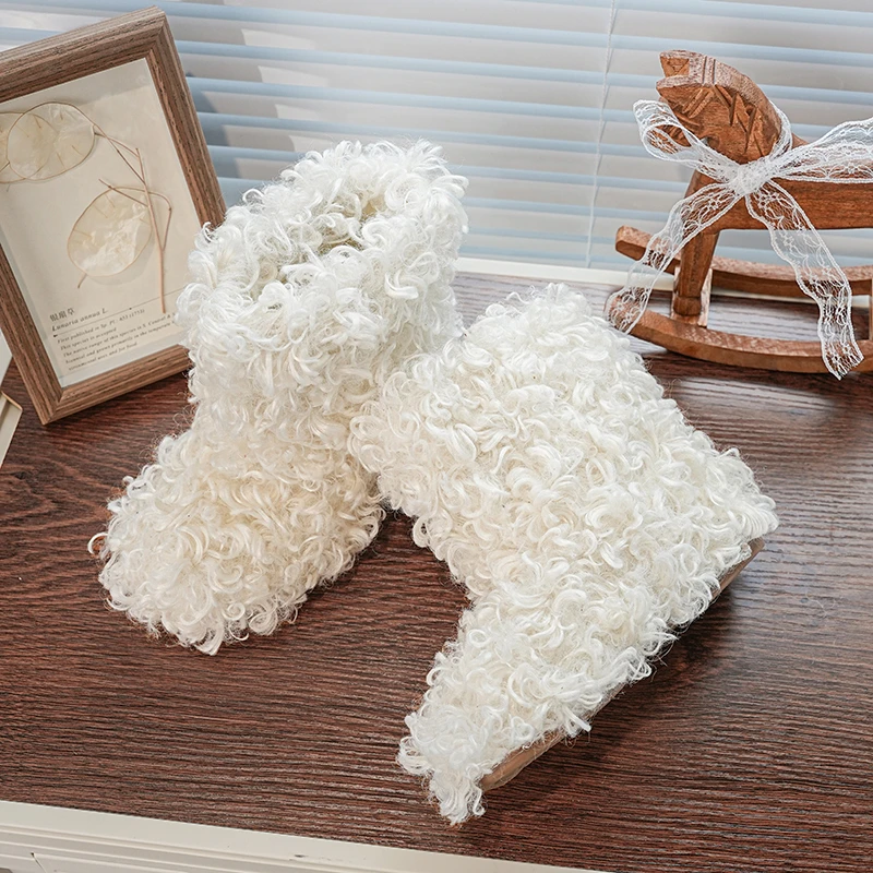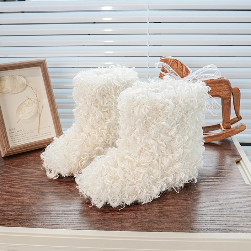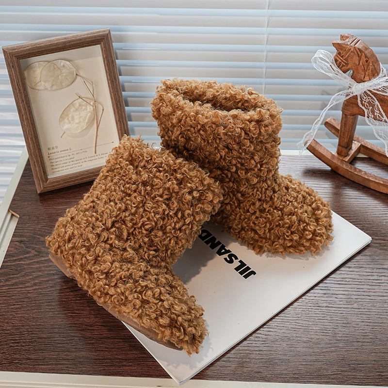 Botas de nieve para bebés y niños, zapatos de otoño e invierno para niños pequeños, botas altas de felpa, zapatos antideslizantes de suela blanda para estudiantes