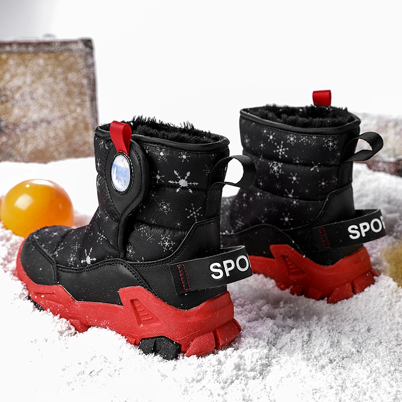 Comprar Botas de nieve impermeables de cuero PU para niños y niñas, zapatos de moda para niños pequeños, cálidos, Invierno
