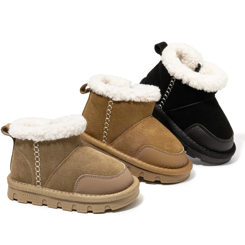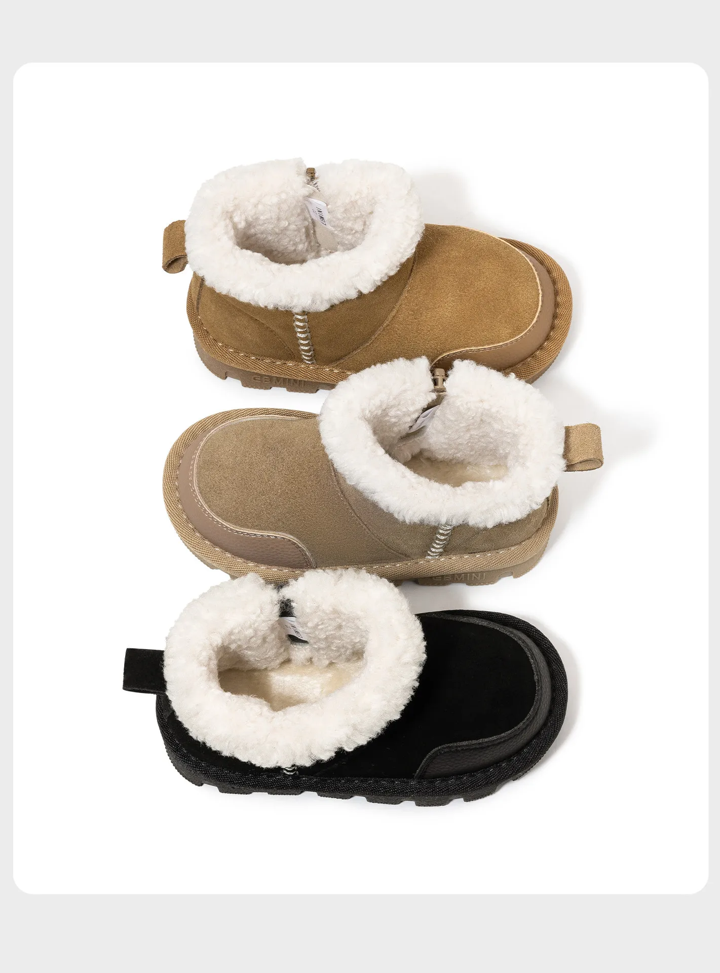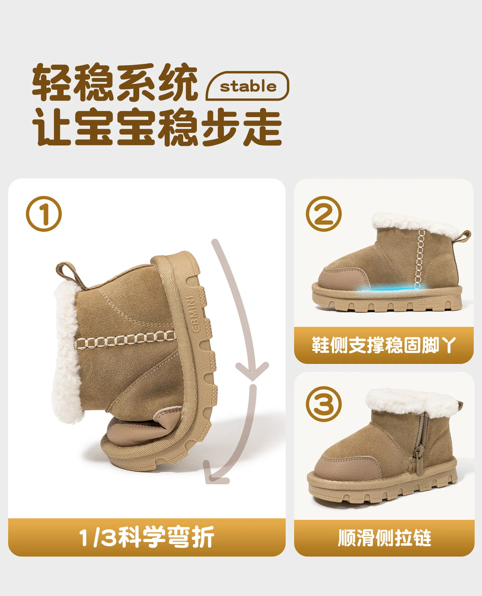 Botas de nieve de invierno para niños con forro de piel suela antideslizante punta reforzada zapatos de algodón cálidos cremallera lateral suela Flexible impermeable