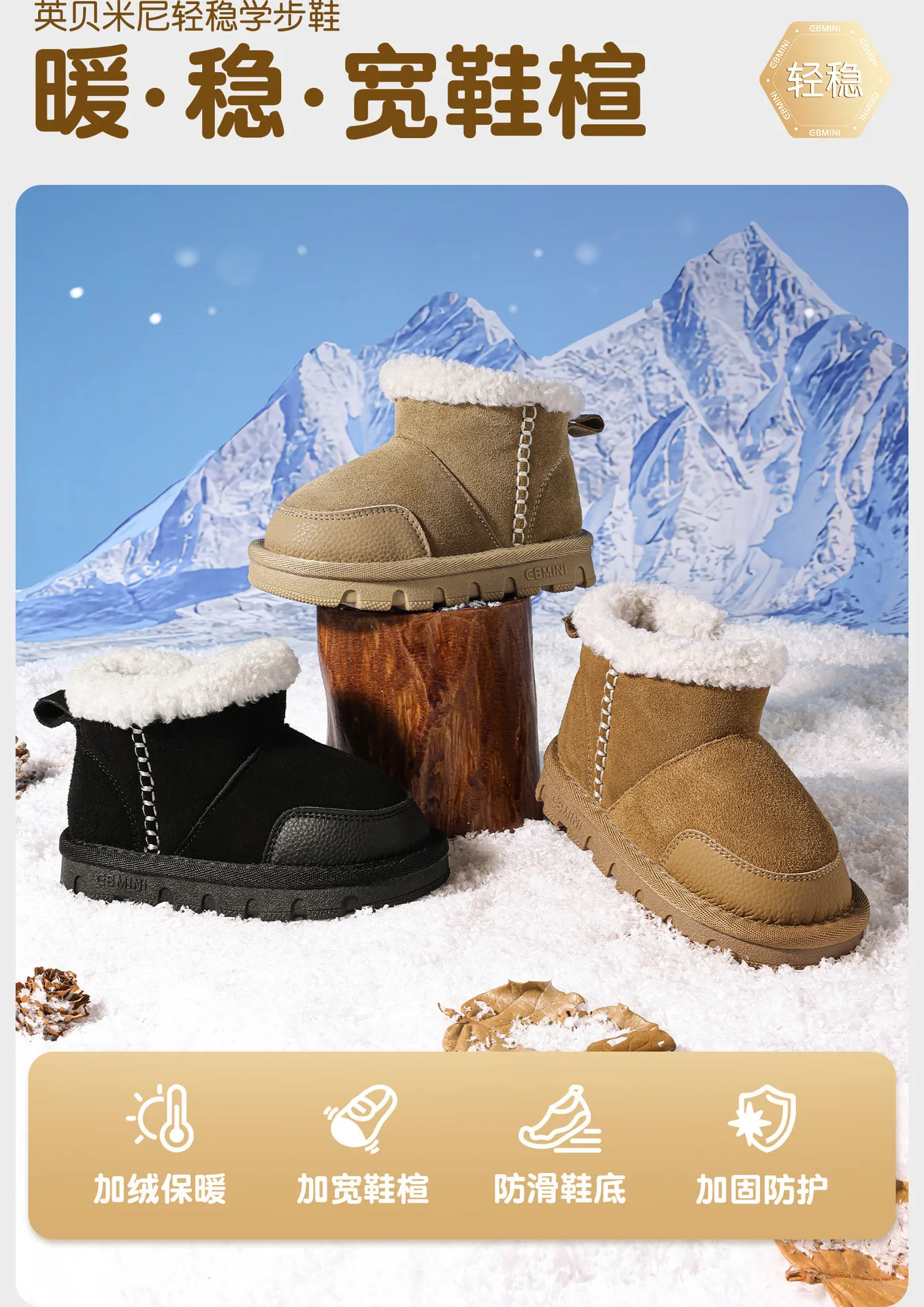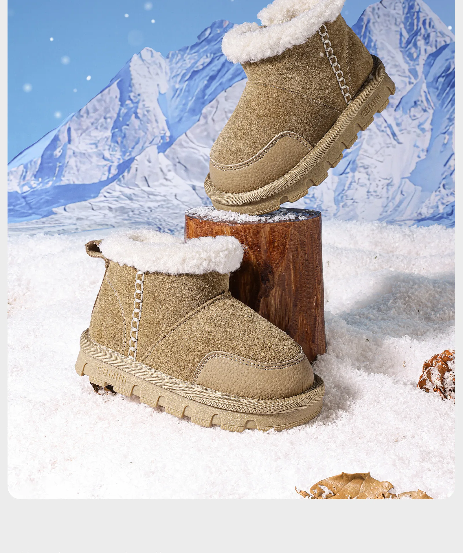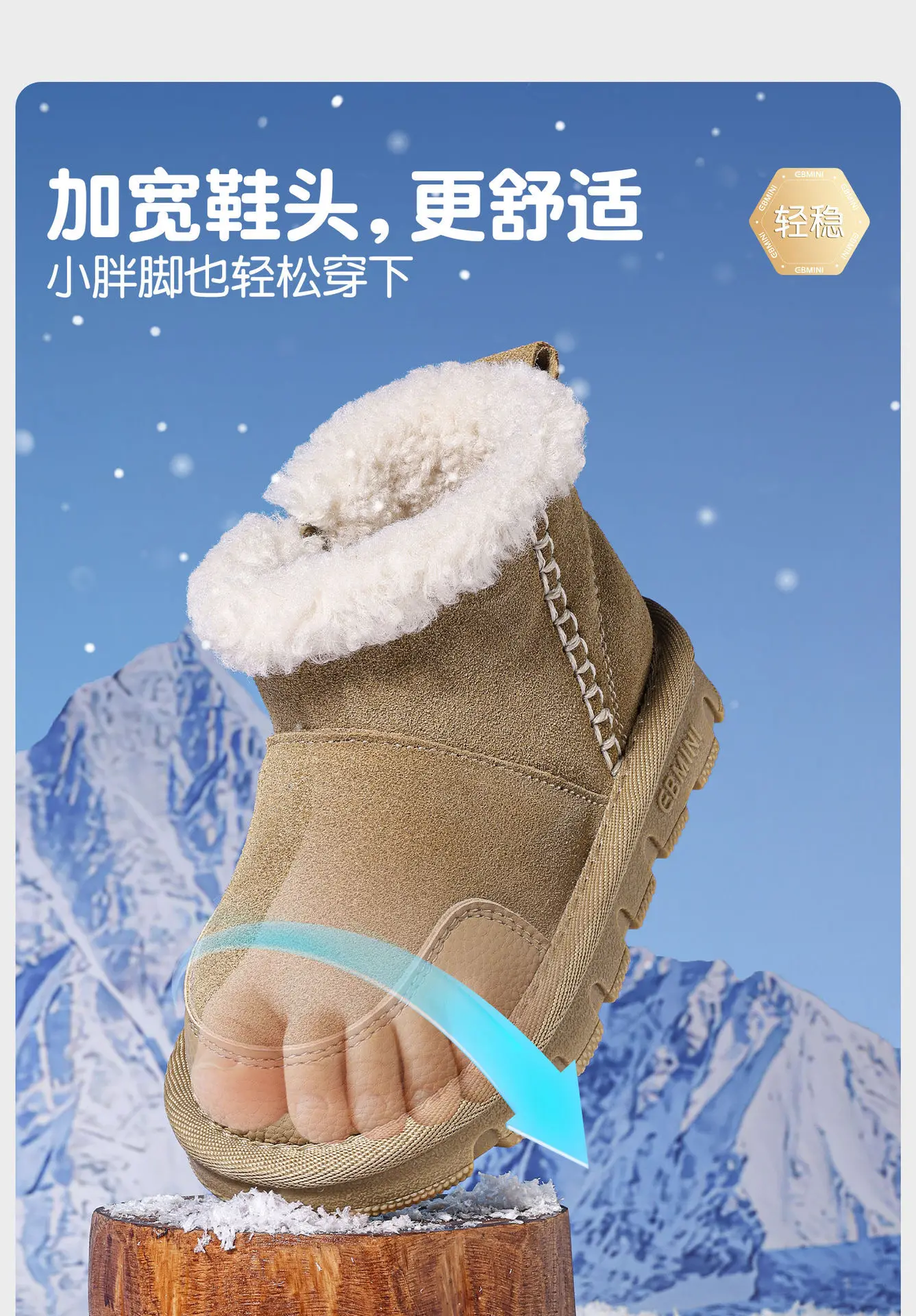 Botas de nieve de invierno para niños con forro de piel suela antideslizante punta reforzada zapatos de algodón cálidos cremallera lateral suela Flexible impermeable