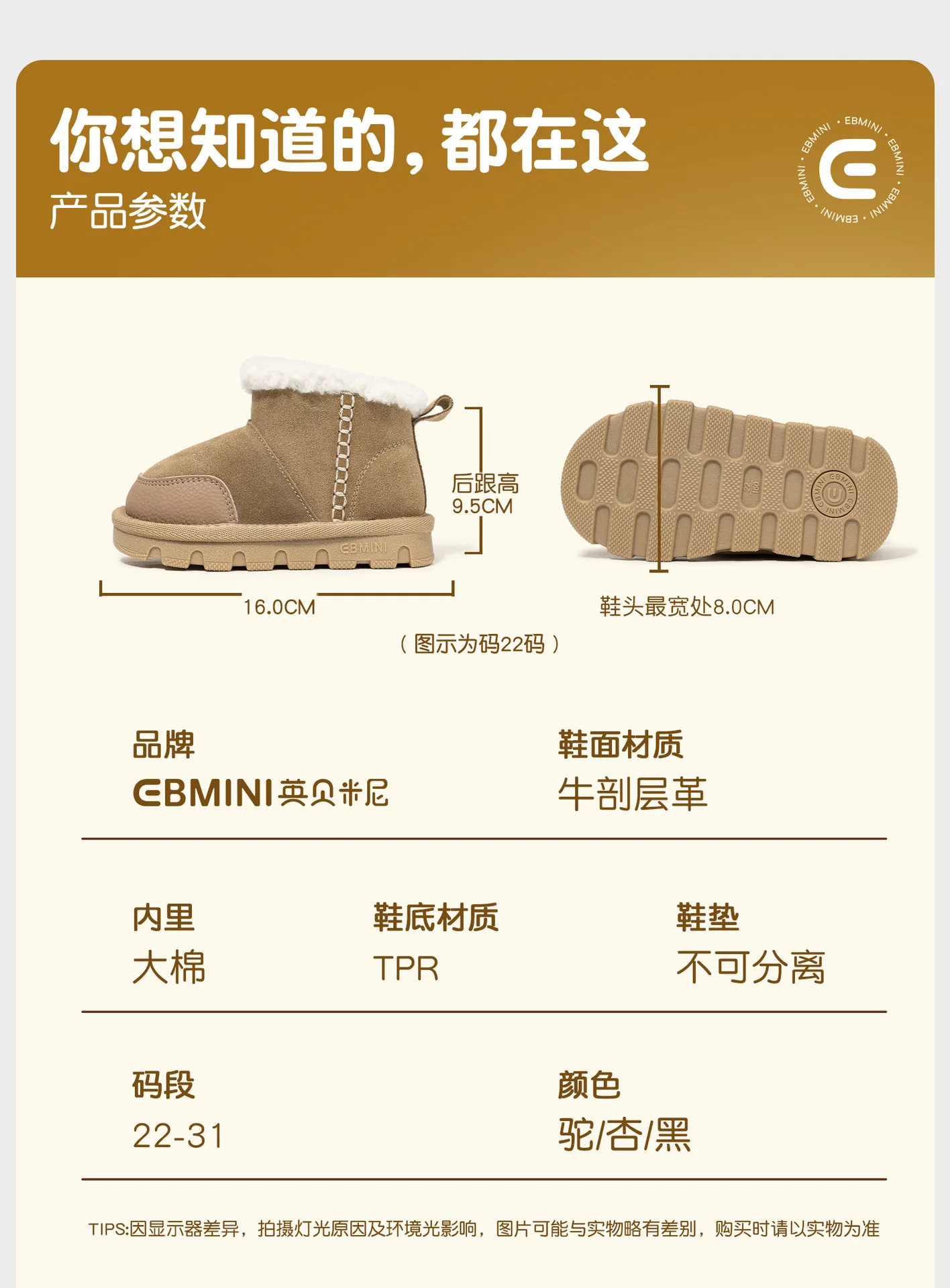 Comprar Botas de nieve de invierno para niños con forro de piel suela antideslizante punta reforzada zapatos de algodón cálidos cremallera lateral suela Flexible impermeable