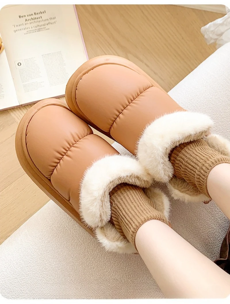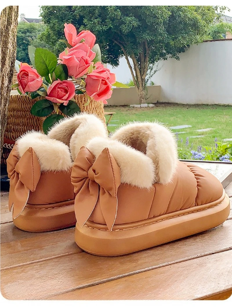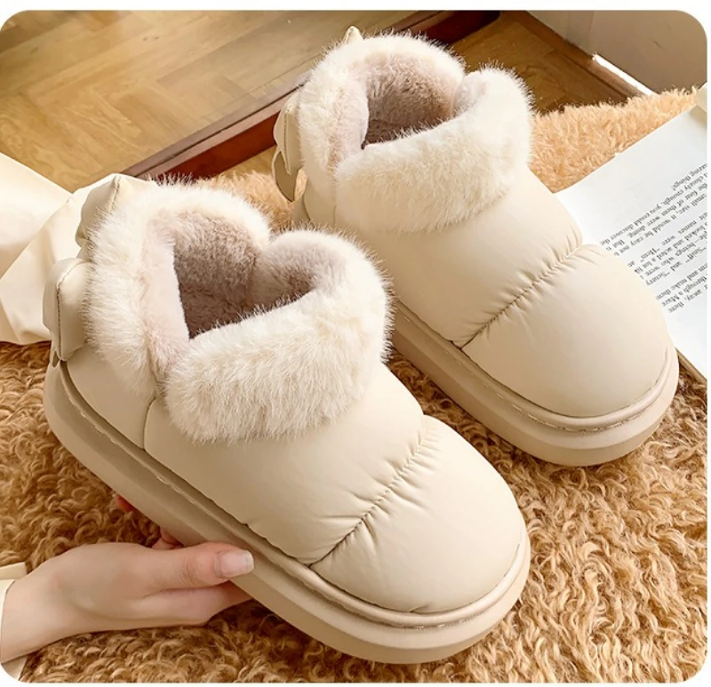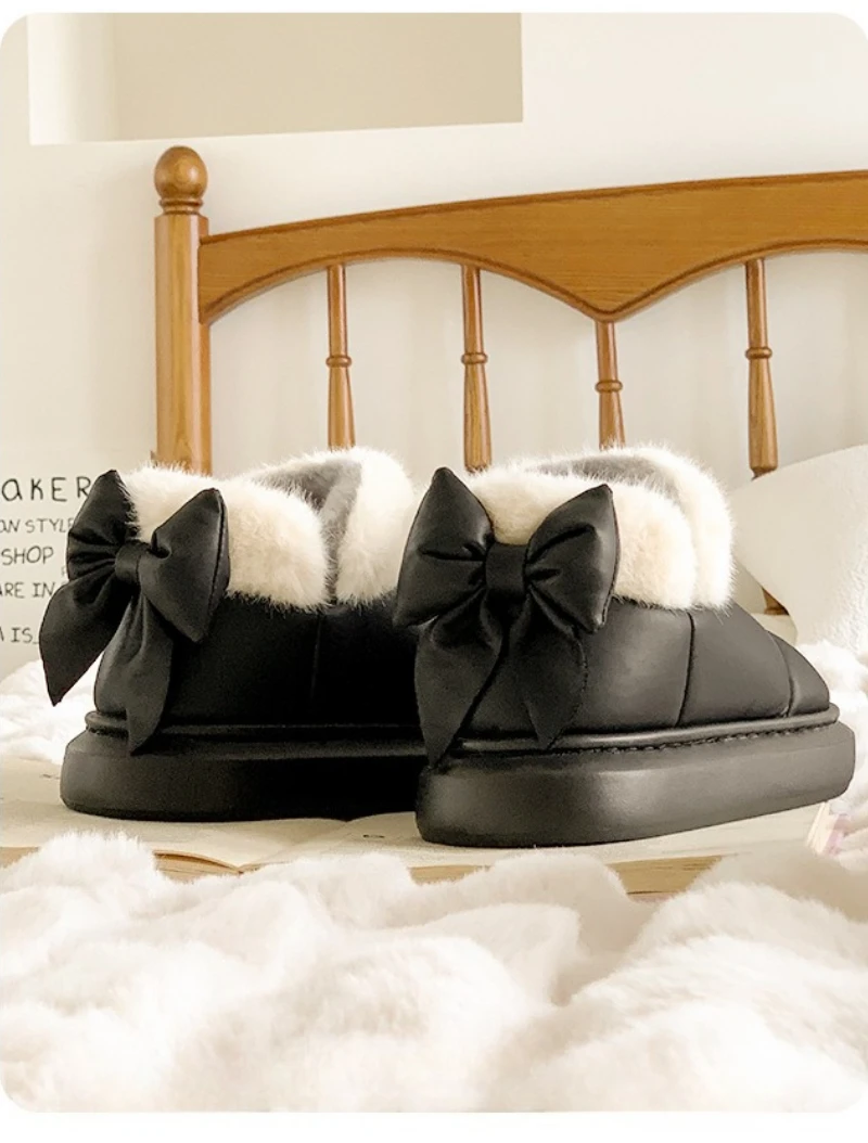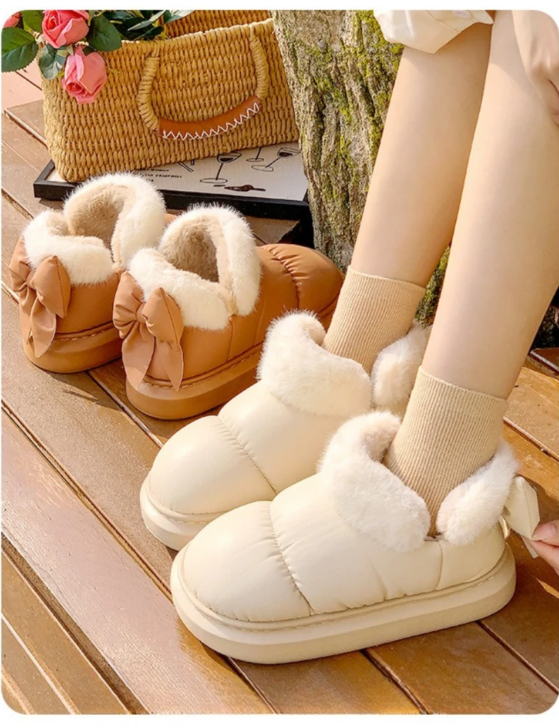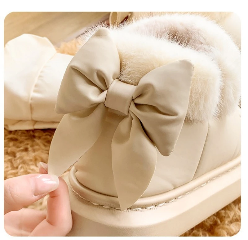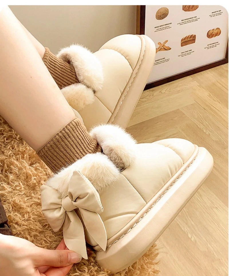 Botas de nieve a la moda con lazo trasero para mujer, zapatos cálidos de invierno, Botas cortas de calle de interior ligeras antideslizantes de felpa suave
