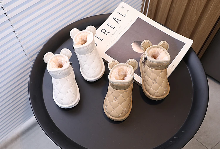 Comprar Botas de nieve para niños y niñas, zapatos de invierno para niños, botas de felpa cálidas para exteriores, zapatos acolchados de algodón impermeables a prueba de viento