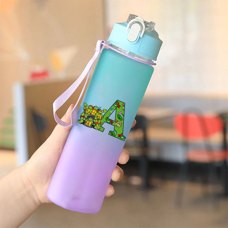 Botella de agua de dibujos animados de tortugas Ninja de 750ML para niños, taza de agua portátil para deportes al aire libre, gran capacidad, regalos de cumpleaños para niños