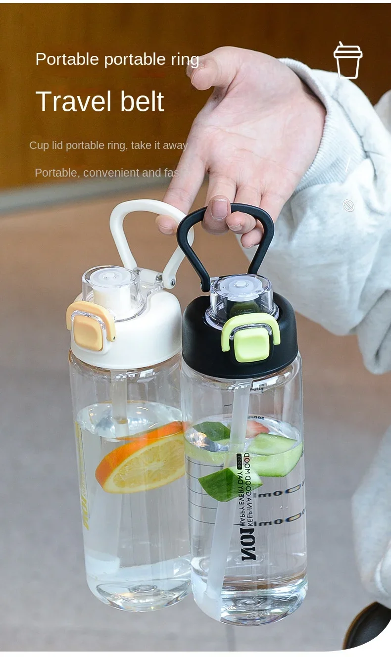 Comprar Botella de agua con pajita de 1000ml para niños, botella de leche de gran capacidad, taza portátil de dibujos animados para estudiantes, viaje escolar para niños