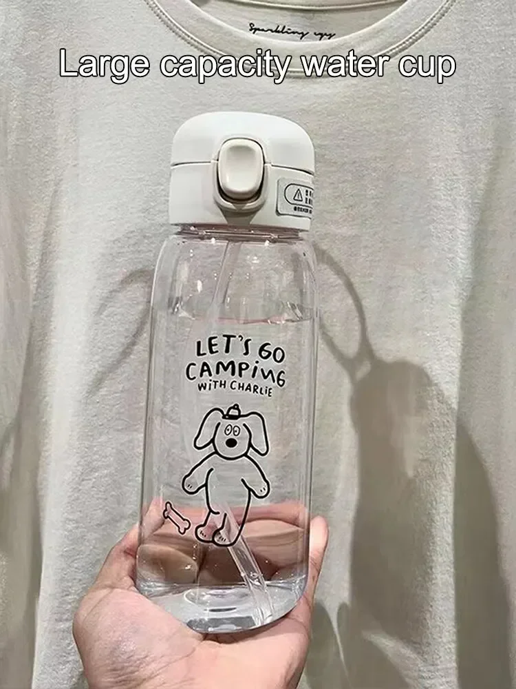 Comprar Botella de agua de plástico para acampar y hacer senderismo, botella de agua portátil Simple, taza de agua de paja de gran capacidad, regalo de cumpleaños