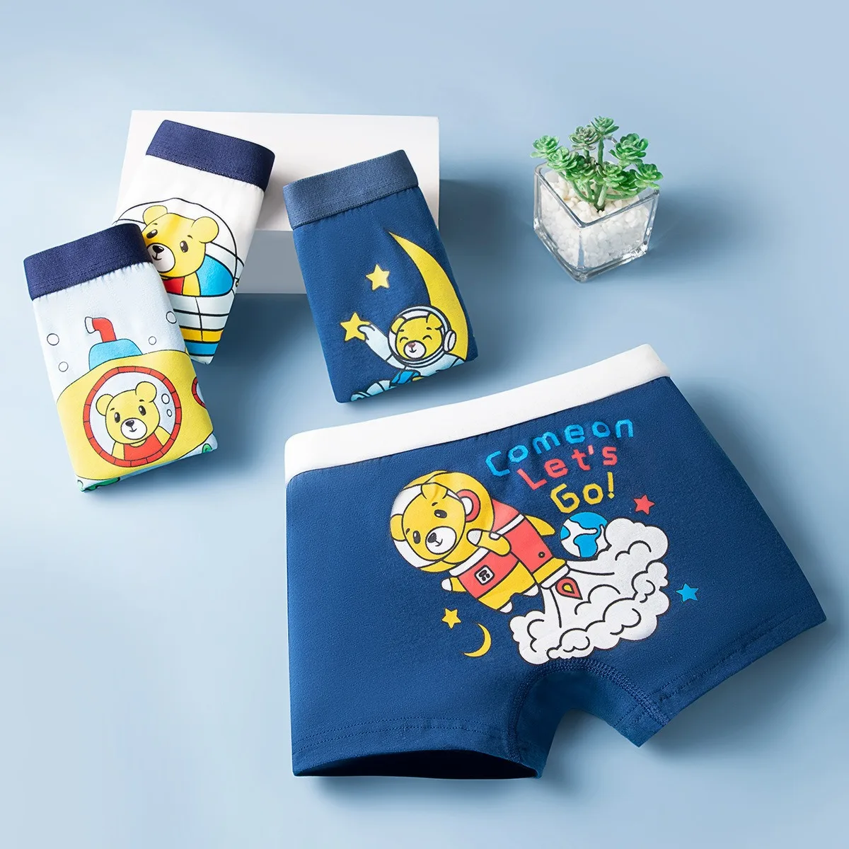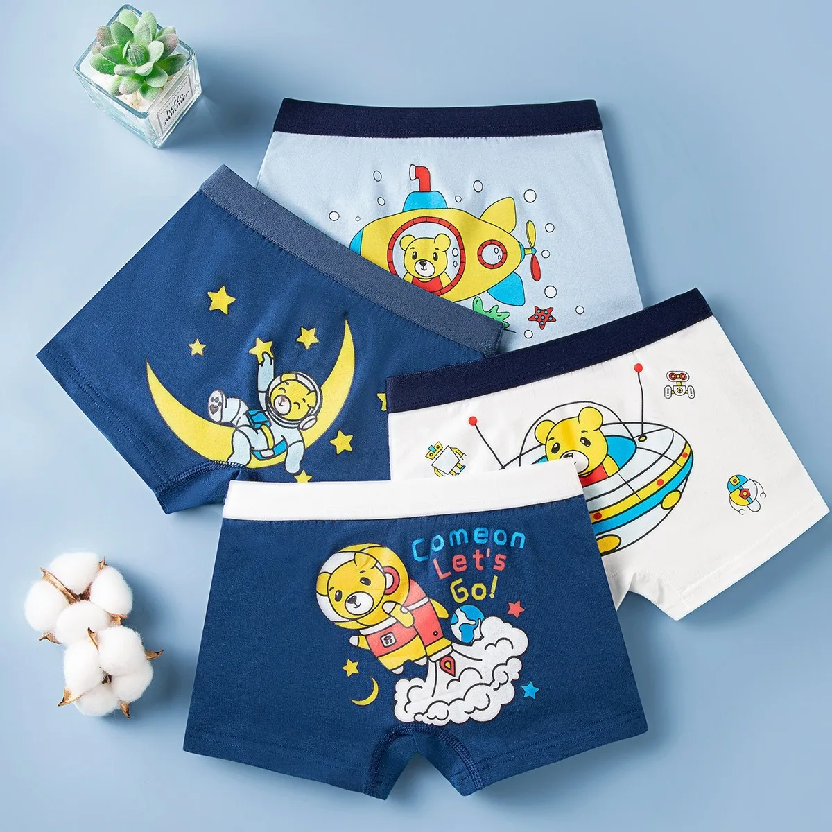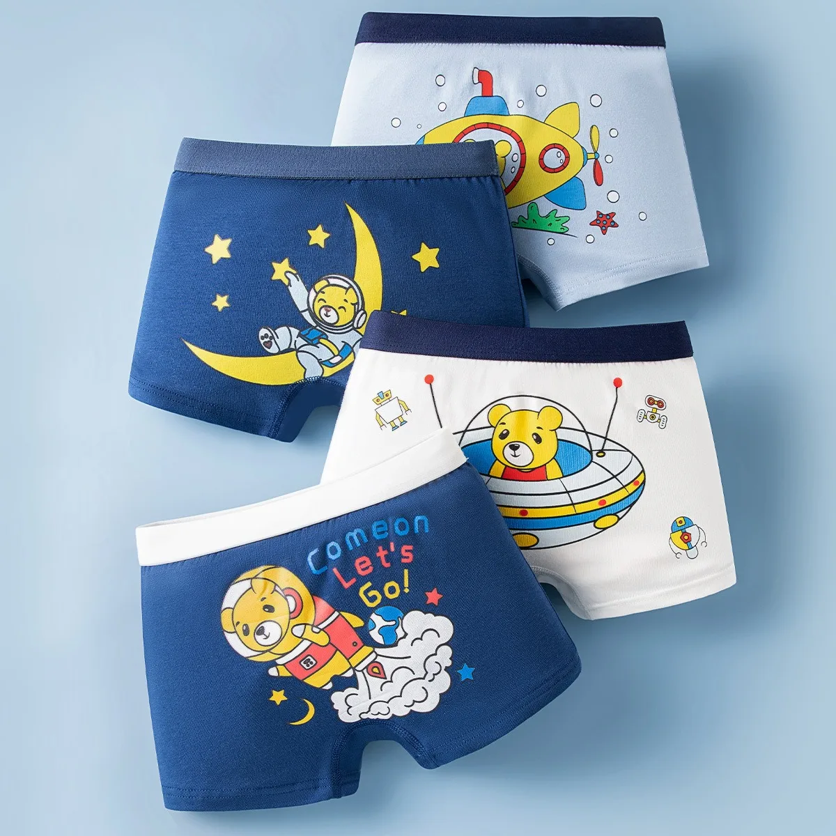 Comprar Bóxer de algodón de alta calidad para niños, ropa interior suave, bragas, galaxia, oso espacial, dibujos animados, transpirable, 4 piezas