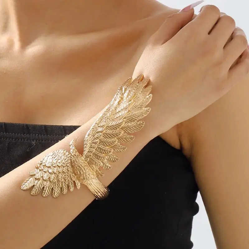 Comprar Brazaletes de alas de águila Punk de lujo, pulsera de Hip Hop de animales Vintage a la moda, brazalete de Color dorado y plateado para mujeres y hombres, joyería de fiesta Y2K