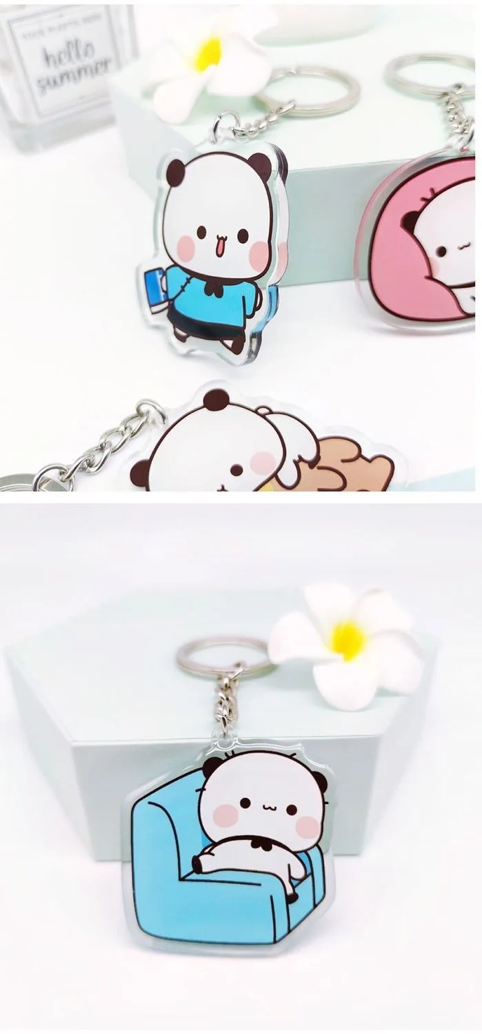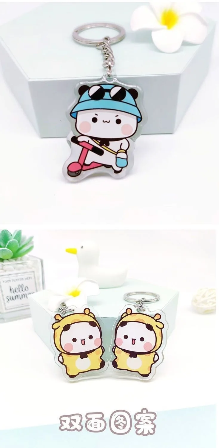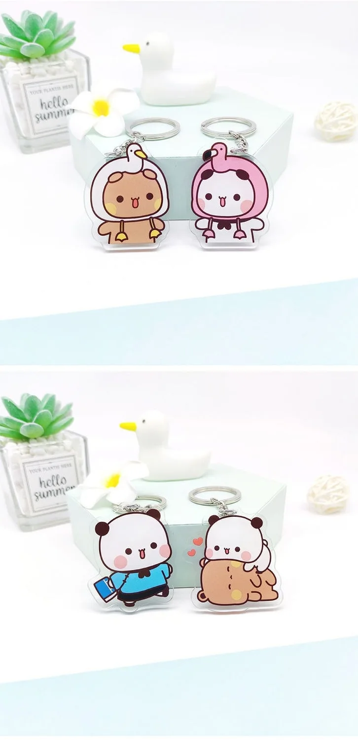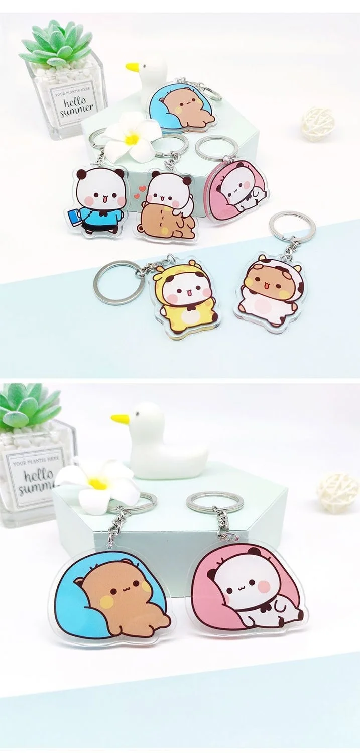 Bubu y Dudu colgante acrílico Kawaii muñecas juguetes lindo Panda de dibujos animados oso muñeca llavero mochila colgante regalo de cumpleaños