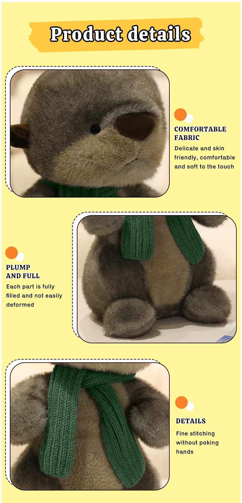 2. La textura es suave, esponjosa y suave, con una expresión linda y una mano de obra meticulosa.Combinado con una linda bufanda, se vuelve aún más vívido.La bufanda es desmontable, lo que dificulta dejarla.