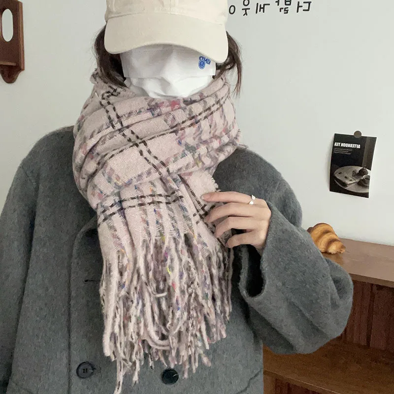 Comprar Bufanda a cuadros de Invierno para mujer, chal de Cachemira de imitación de línea mixta de Color cálido, alta calidad