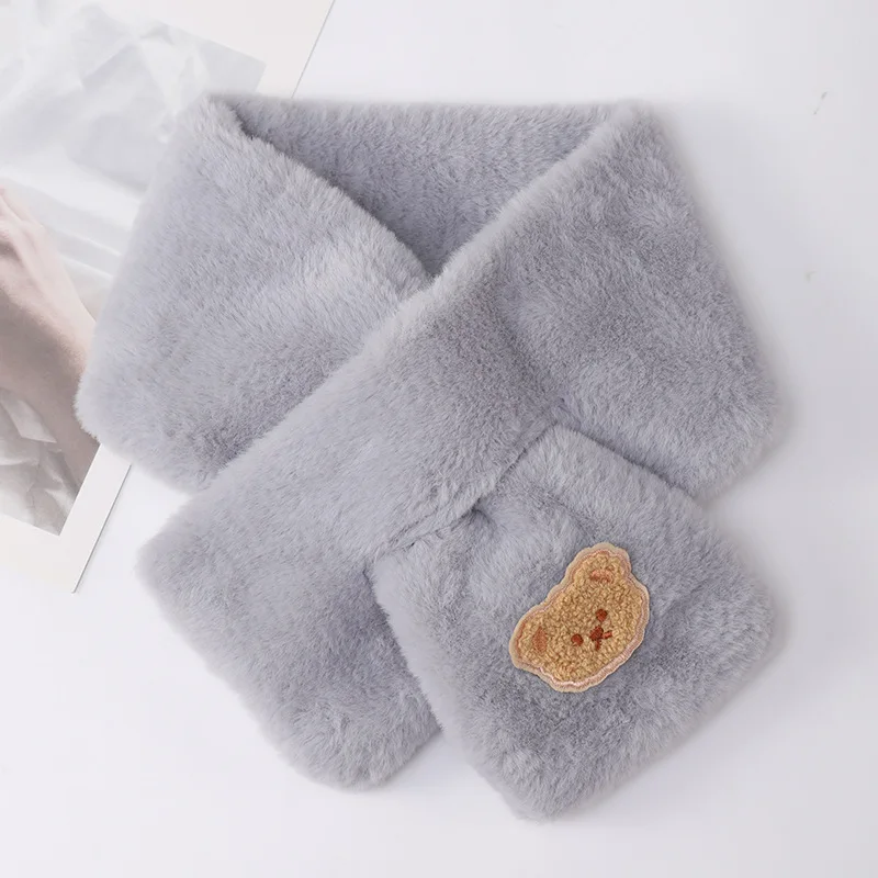 Bufanda de oso bonito para bebé, bufandas cálidas de invierno para niños y niñas, Protector de cuello de piel de conejo de imitación, bufanda cruzada de felpa suave, accesorios para niños