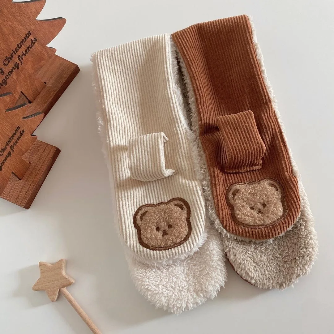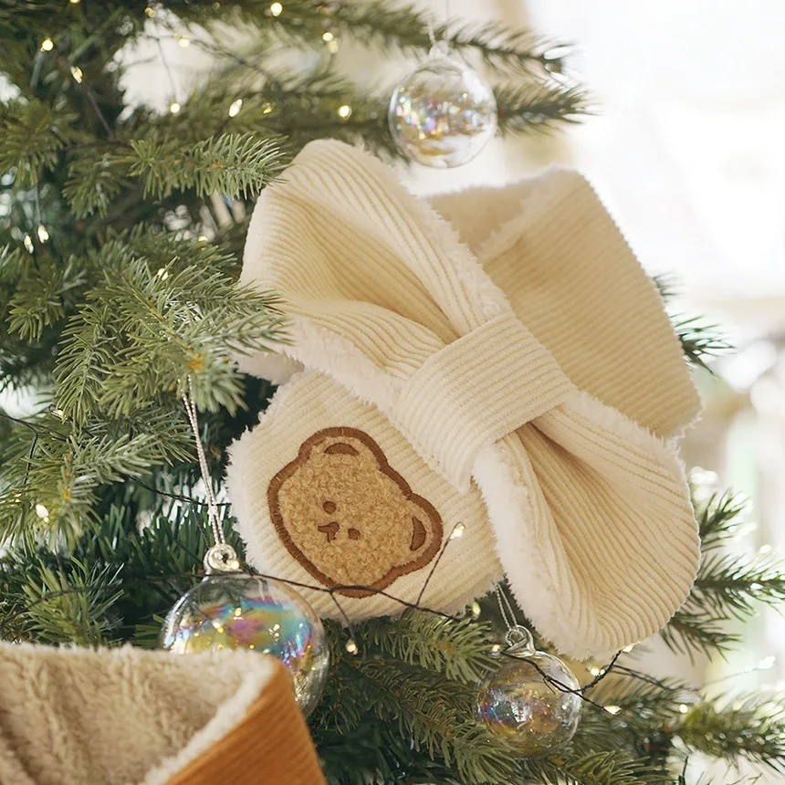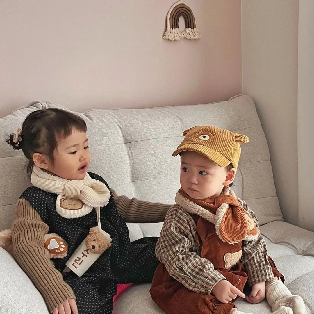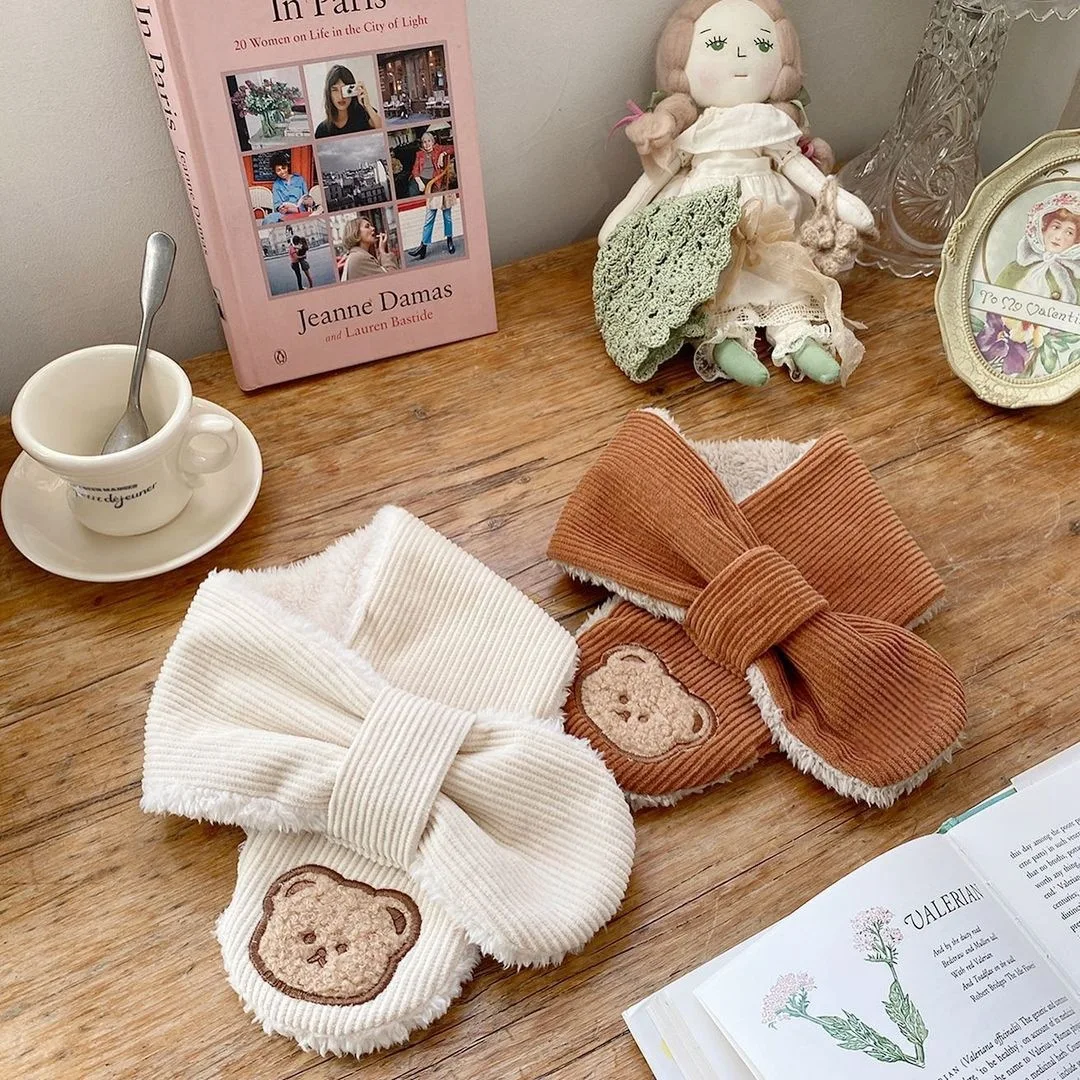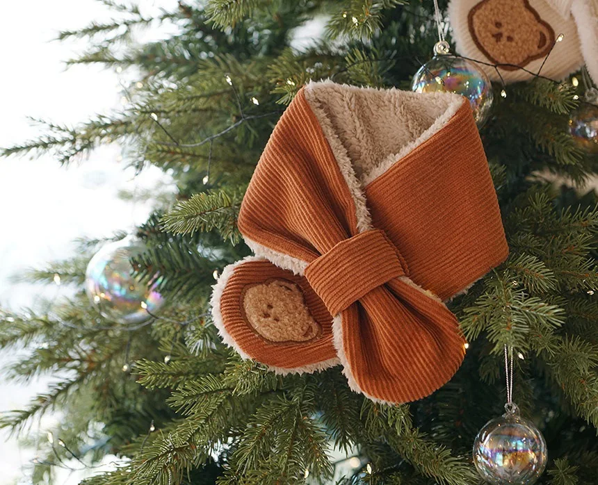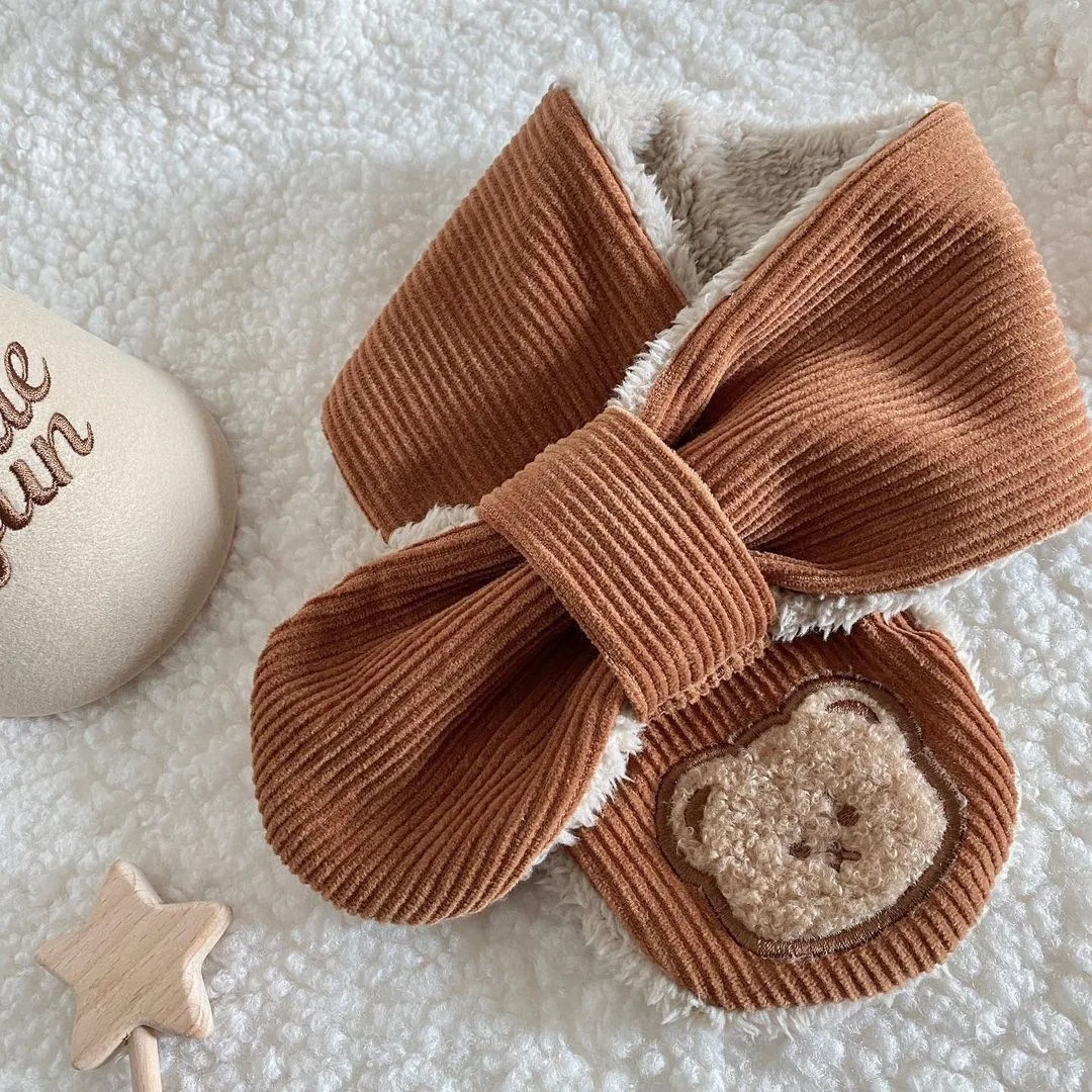 Bufanda bonita de oso de dibujos animados para niño y niña, bufanda informal de estilo coreano, Color Beige Kakhi, bufanda para niño, bufanda cálida de lana para otoño e invierno