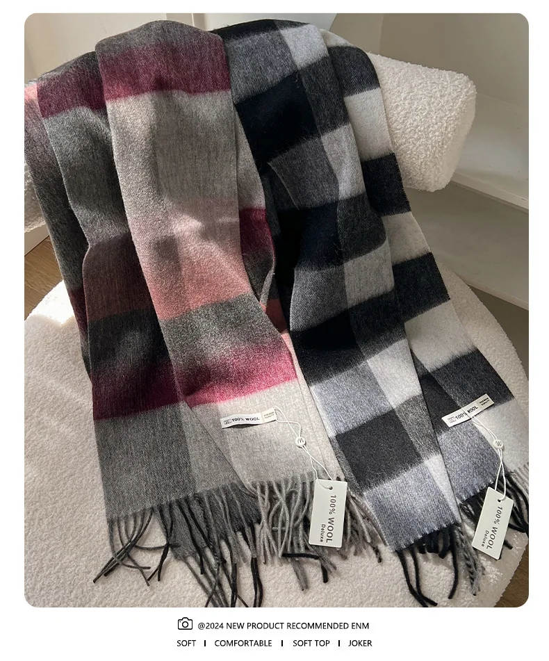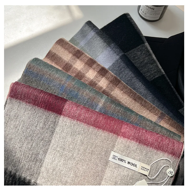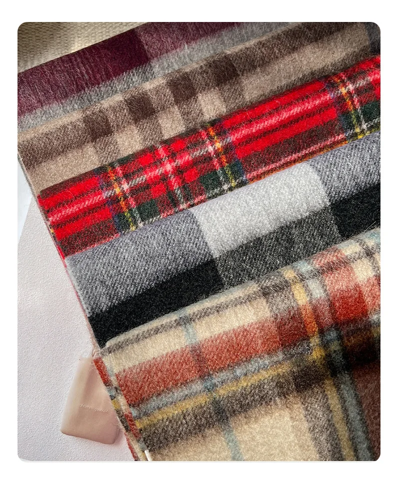 Comprar Bufanda de cachemira pura a cuadros Vintage, bufanda de lana, bufanda cálida y versátil para invierno para mujer